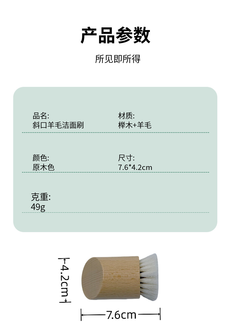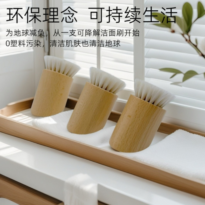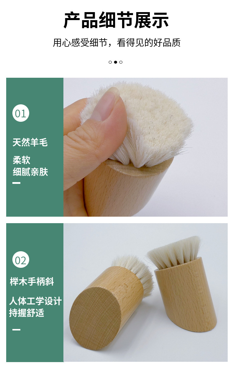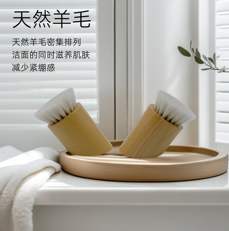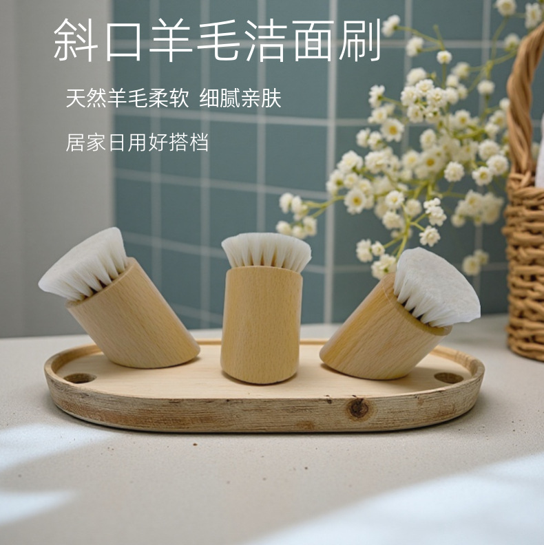 Cepillo de masaje de madera profundo, cepillo de lana inclinado de beech, cepillo de limpieza facial, cepillo facial pequeño, cepillo de limpieza facial profundo