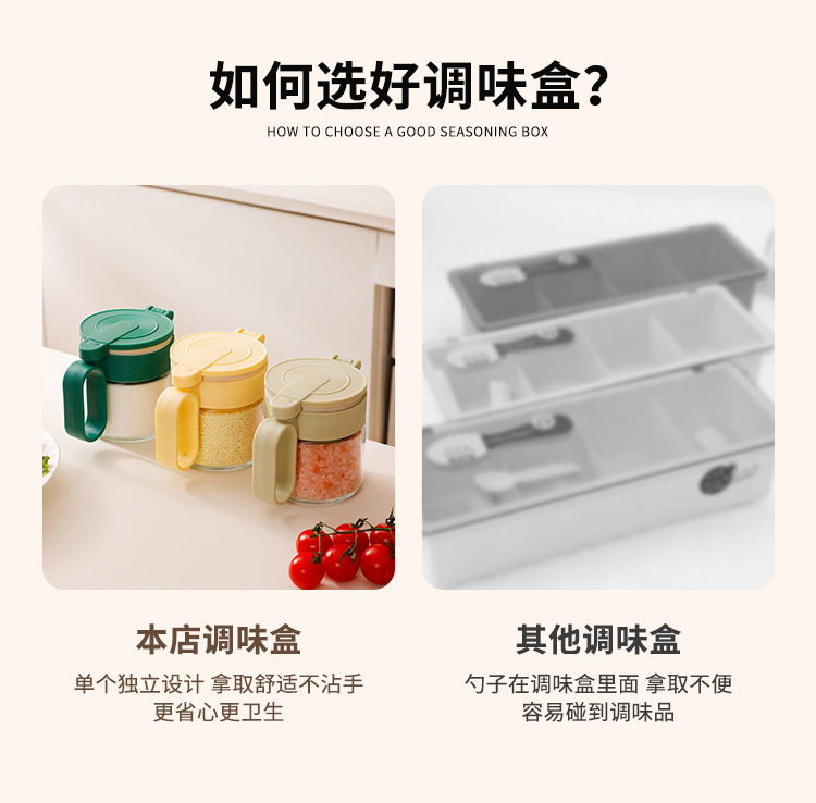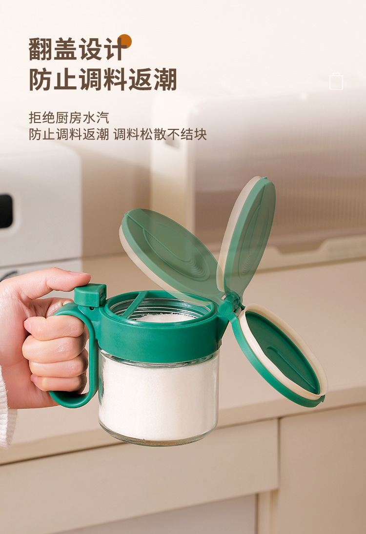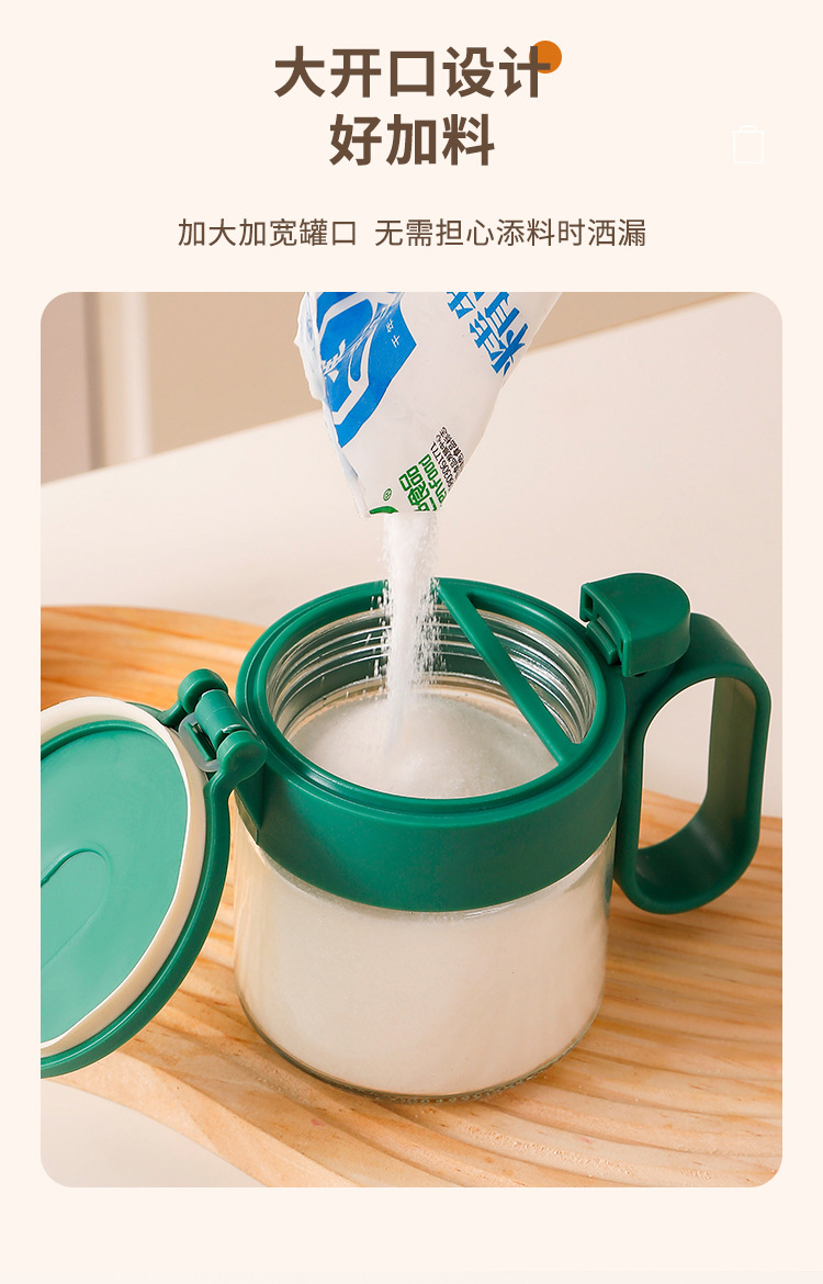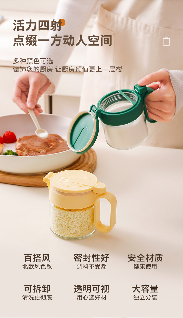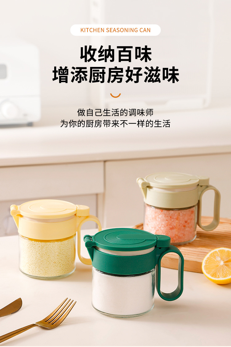 Nuevo tanque de condimento, multifunción y conveniente, botella de condimento doméstico, caja de condimento de encimera, botella de vidrio con botella de condimento de cuchara