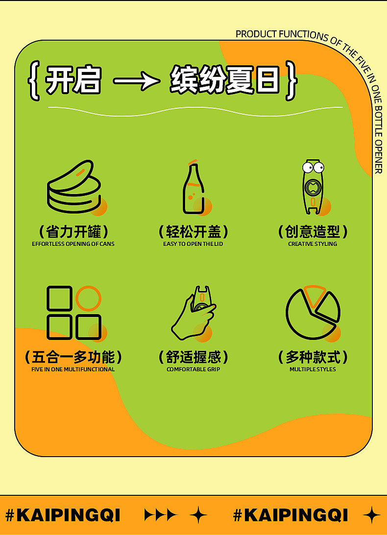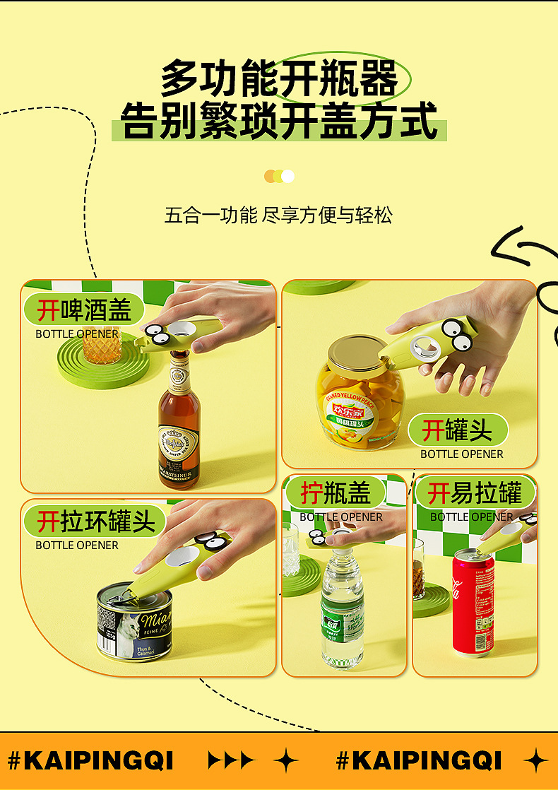 Nuevo creativo multipropósito abrelatas 5 en 1 dibujos animados multifuncional soda tornillo de tapa creativo cerveza levantador de tapa