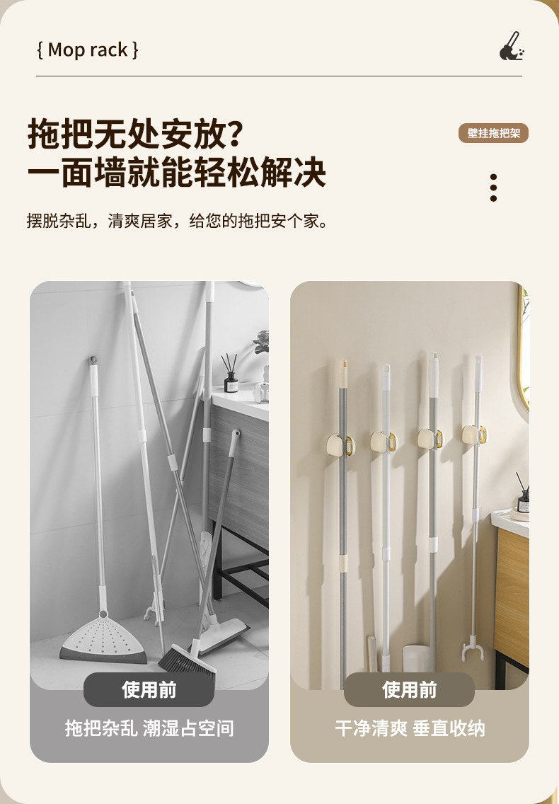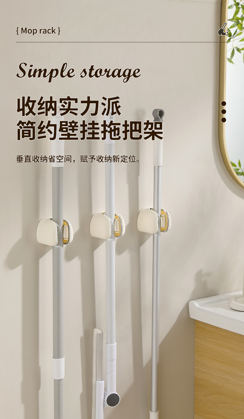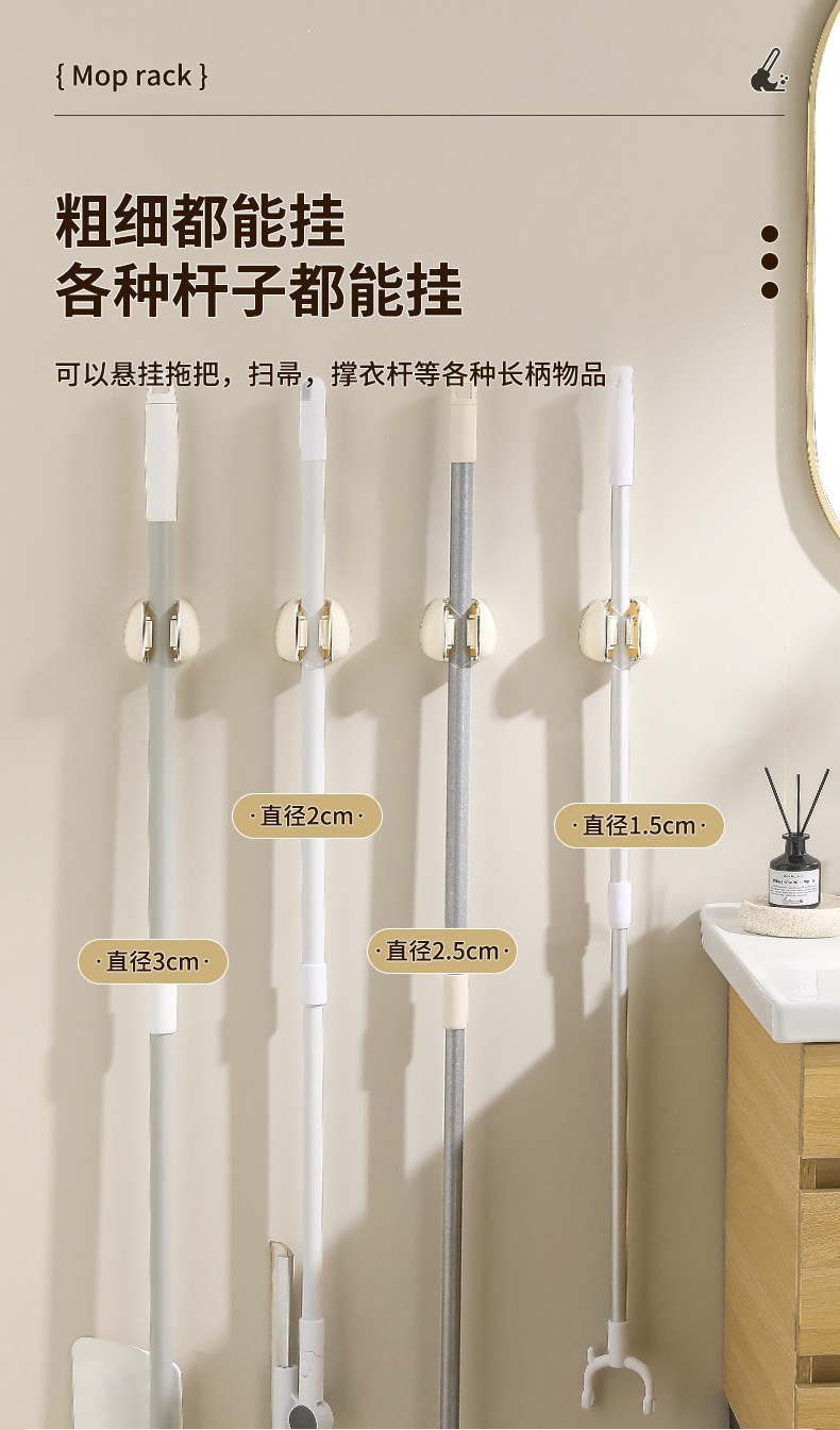 simple y ligero soporte de trapeador de lujo sin perforación tipo pared de almacenamiento de baño fuerte gancho sin rastro escoba fijación artefacto mágico