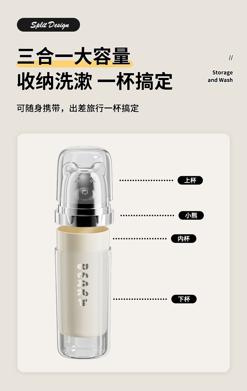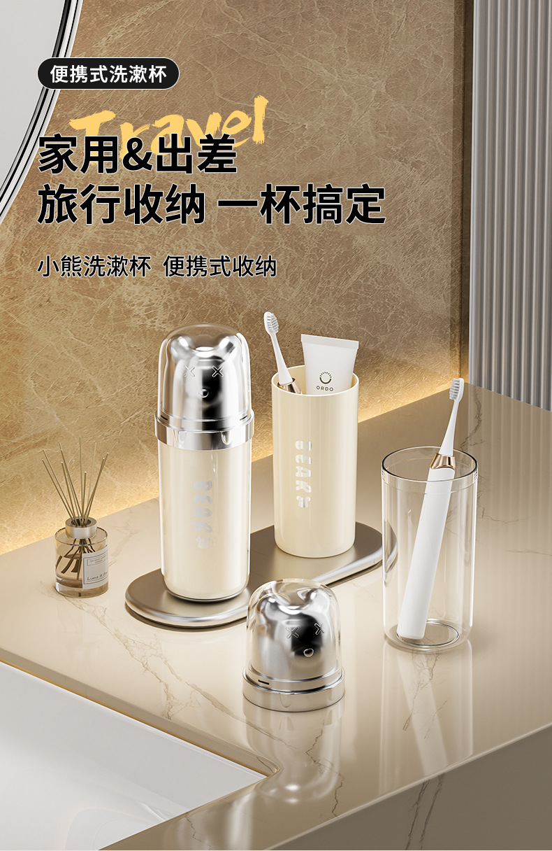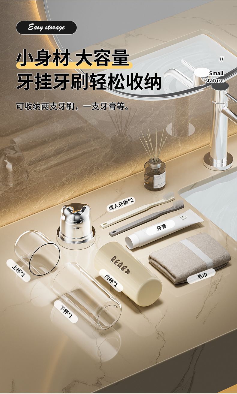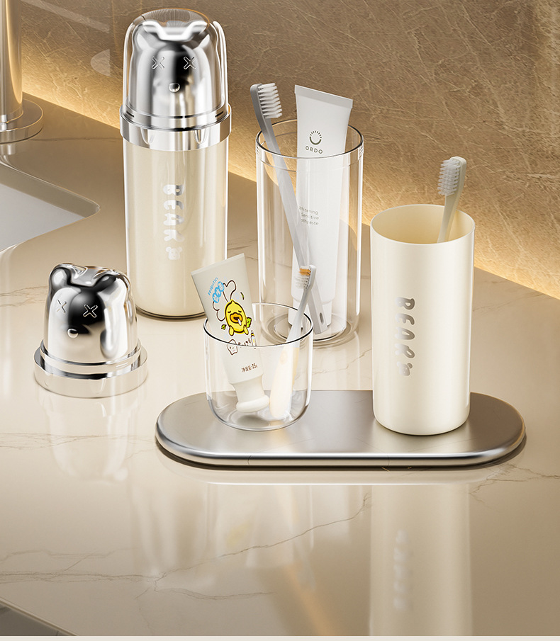 Taza de enjuague de oso portátil de viaje 3 en 1 caja de almacenamiento de aparatos dentales de alto valor facial artículos de higiene