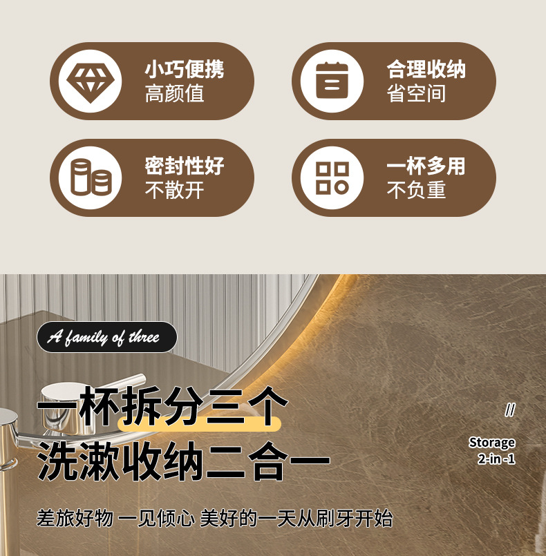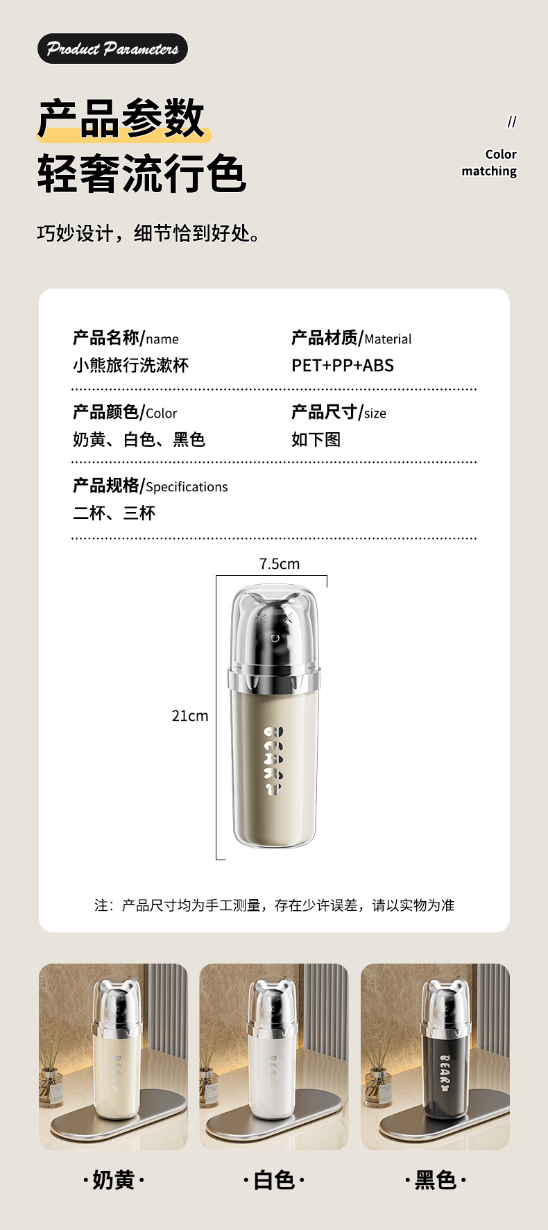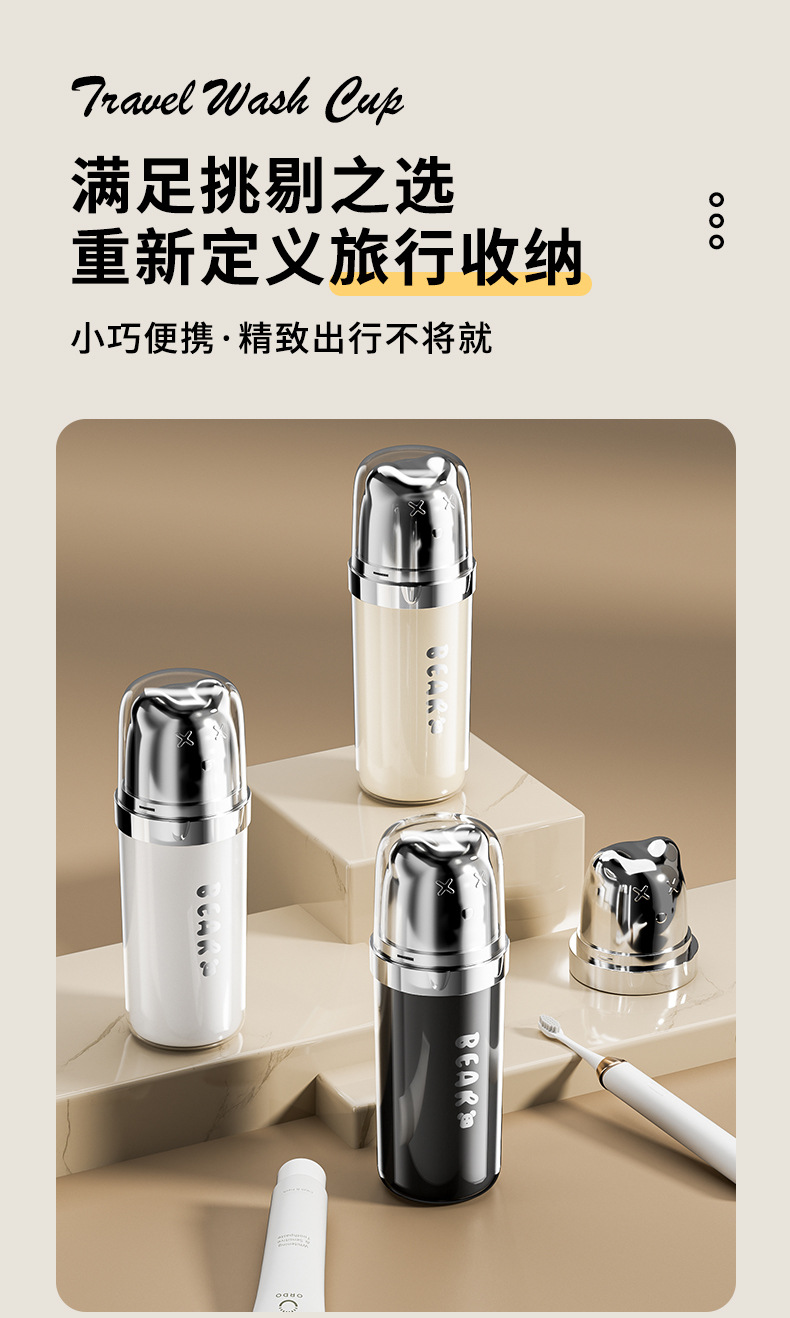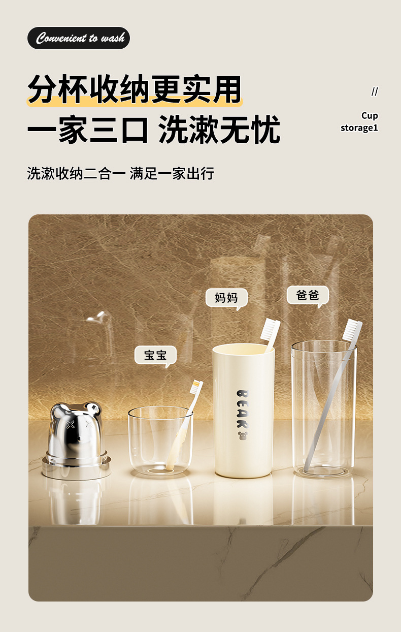 Taza de enjuague de oso portátil de viaje 3 en 1 caja de almacenamiento de aparatos dentales de alto valor facial artículos de higiene