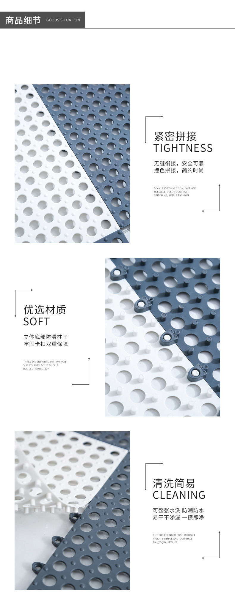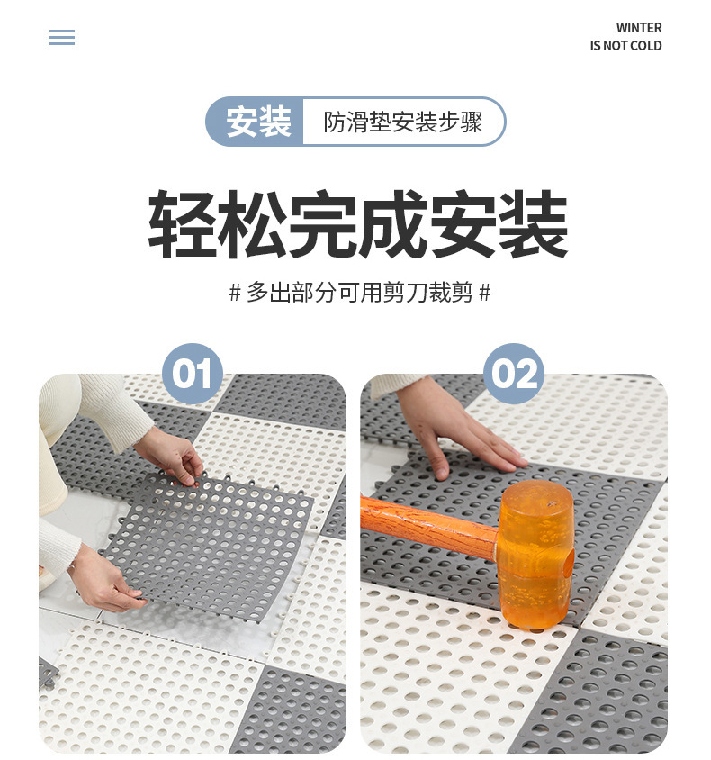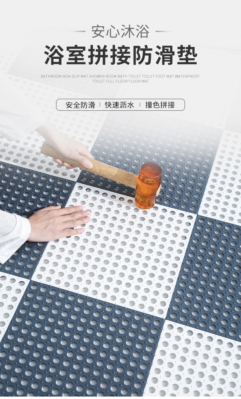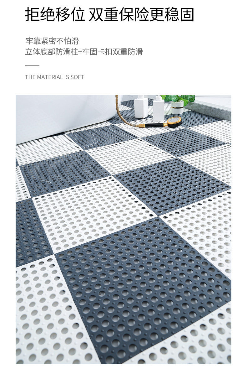 Almohadilla de pie de costura hueca de baño antideslizante engrosada, la alfombra de la puerta del inodoro de la ducha resistente al desgaste para el hogar se puede cortar y empalmar libremente