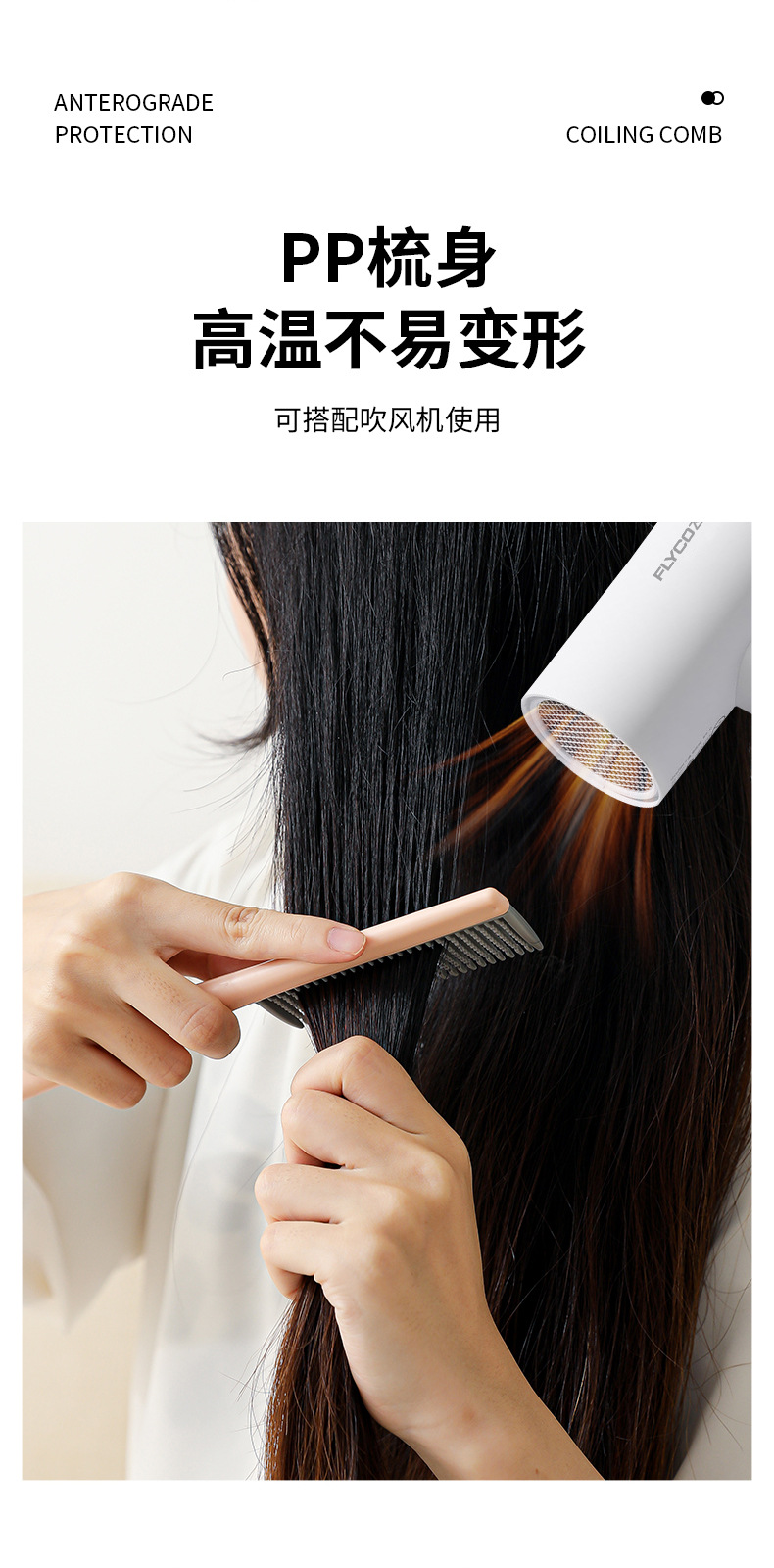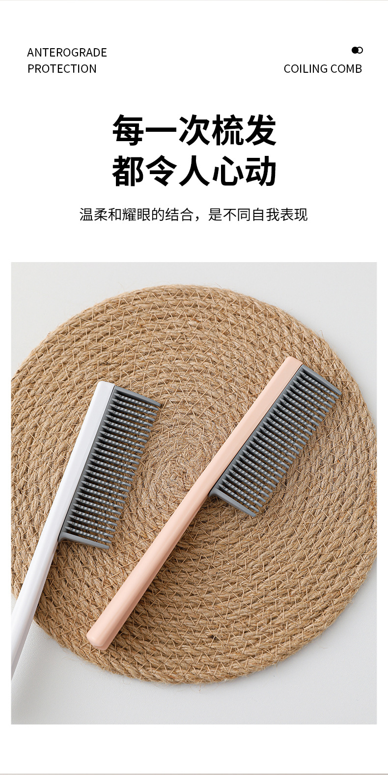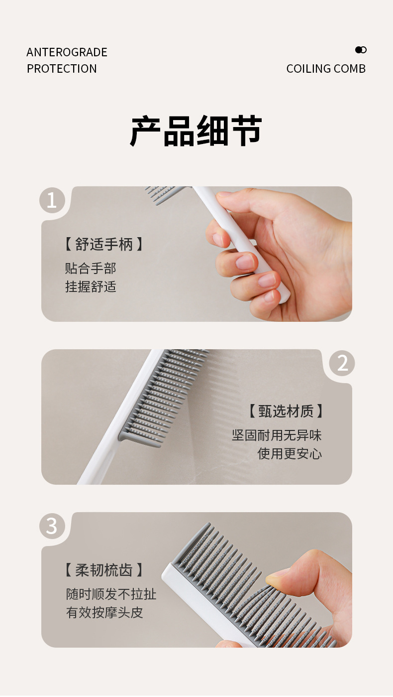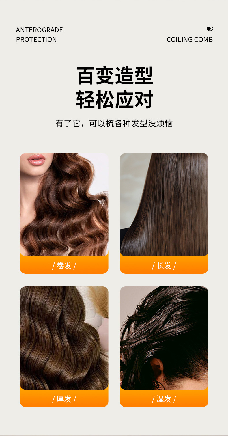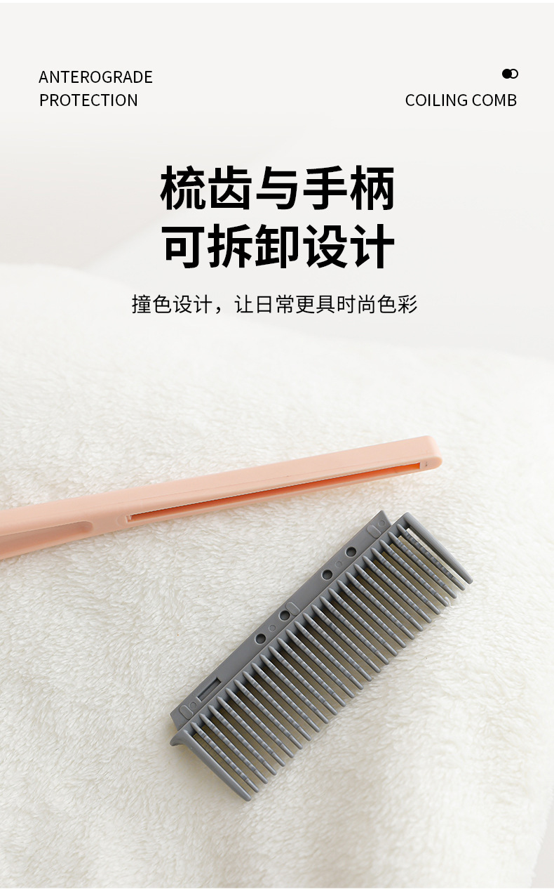 Venta caliente transfronteriza peine de peluquería portátil peine de pelo largo para niñas peine de dientes densos peine de pelo rizado antiestático peine esponjoso extraíble