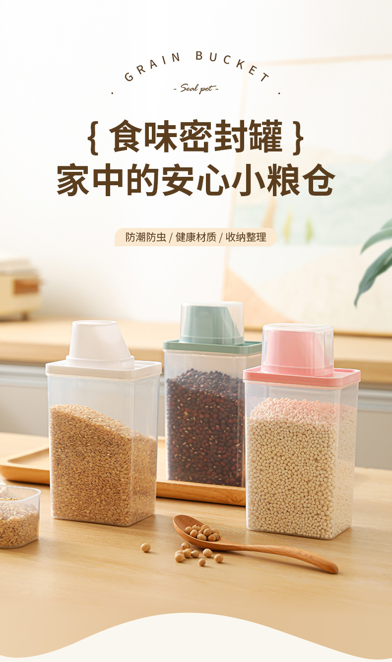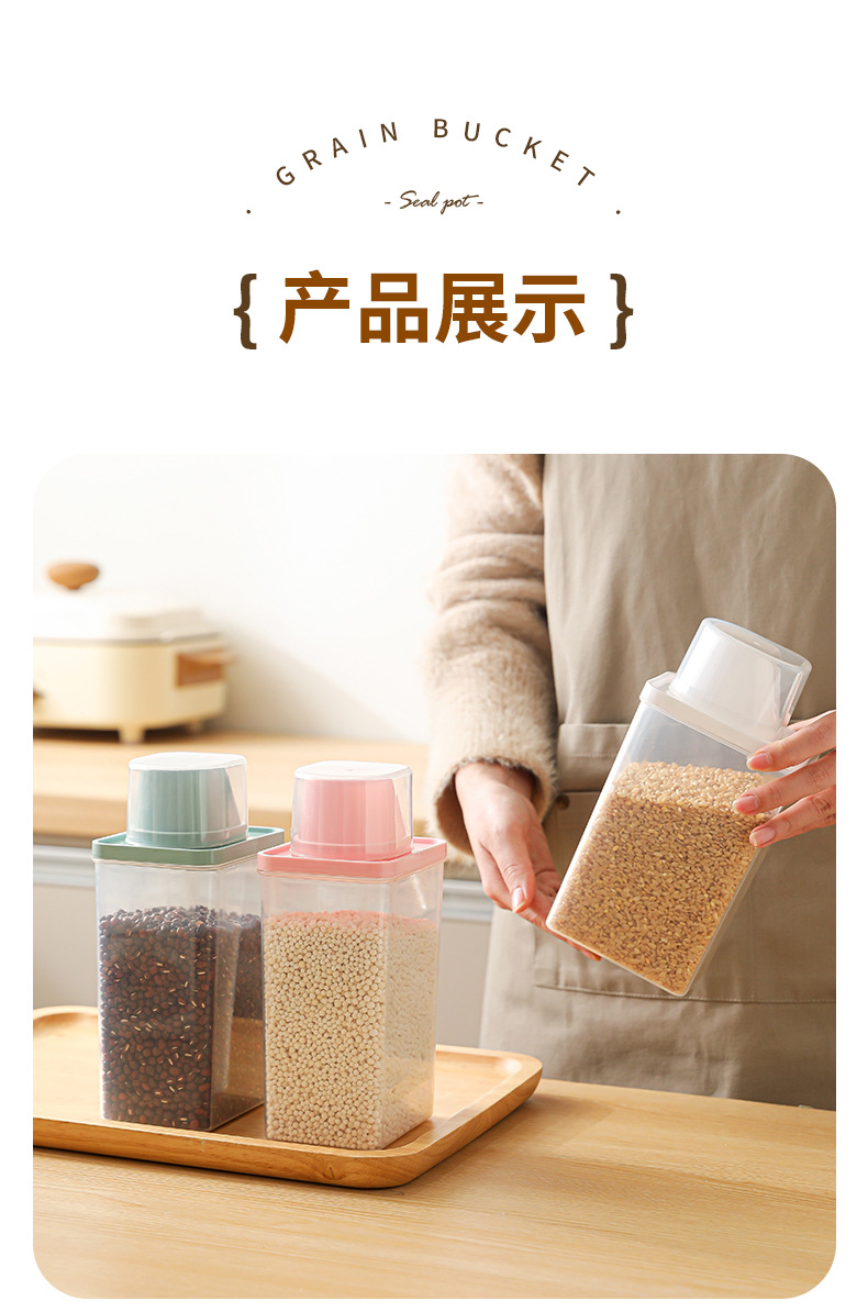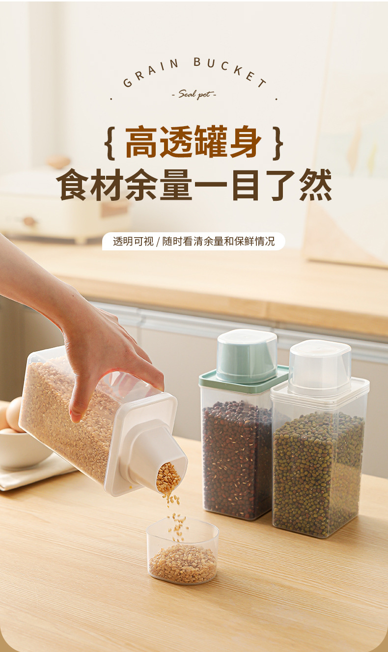 Cubo de arroz sellado, tanque de granos diversos, tanque de almacenamiento de alimentos de plástico transparente, caja de almacenamiento de granos integrales, tanque de almacenamiento de arroz sellado a prueba de humedad