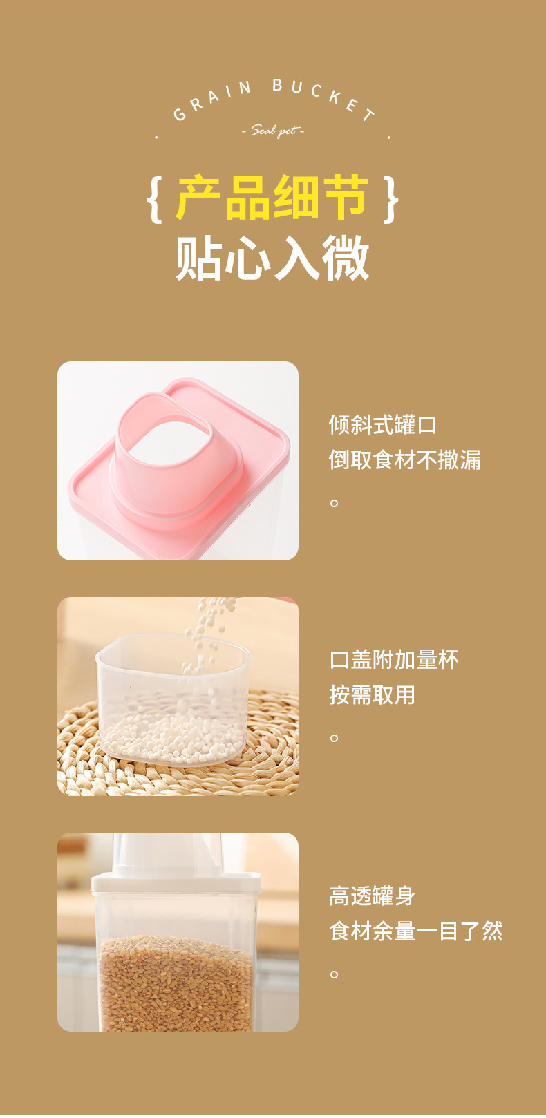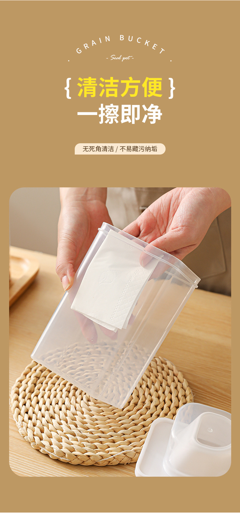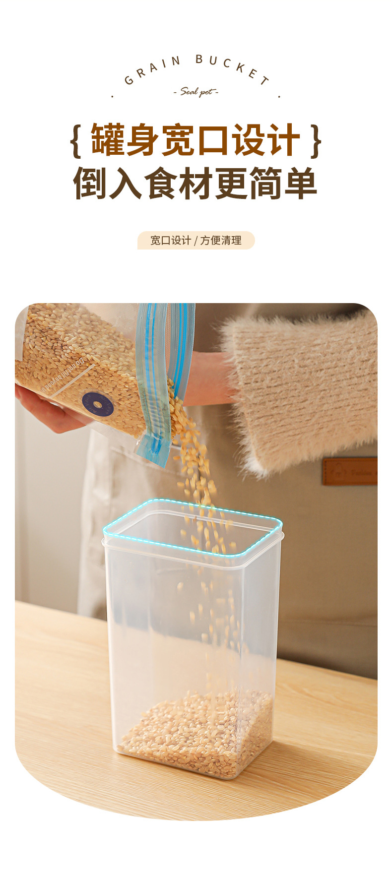 Cubo de arroz sellado, tanque de granos diversos, tanque de almacenamiento de alimentos de plástico transparente, caja de almacenamiento de granos integrales, tanque de almacenamiento de arroz sellado a prueba de humedad