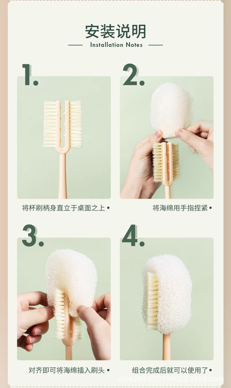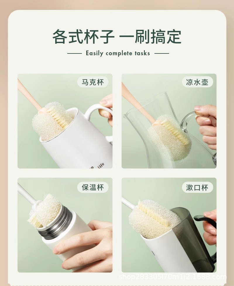 Taza de pulpa de lufa, taza de lavado, artefacto, taza de agua, mango largo, cepillo pequeño para lavar el biberón, sin callejones sin salida, esponja para eliminar las manchas de té