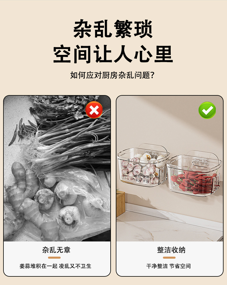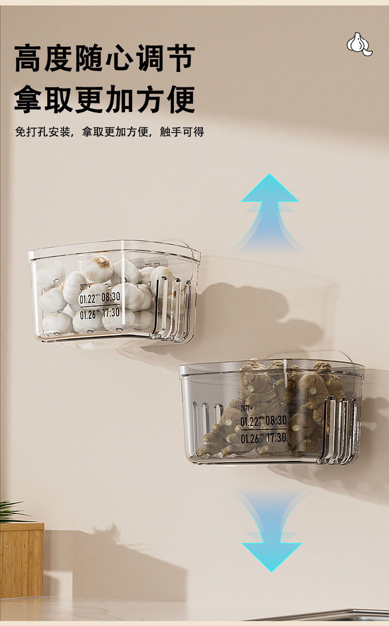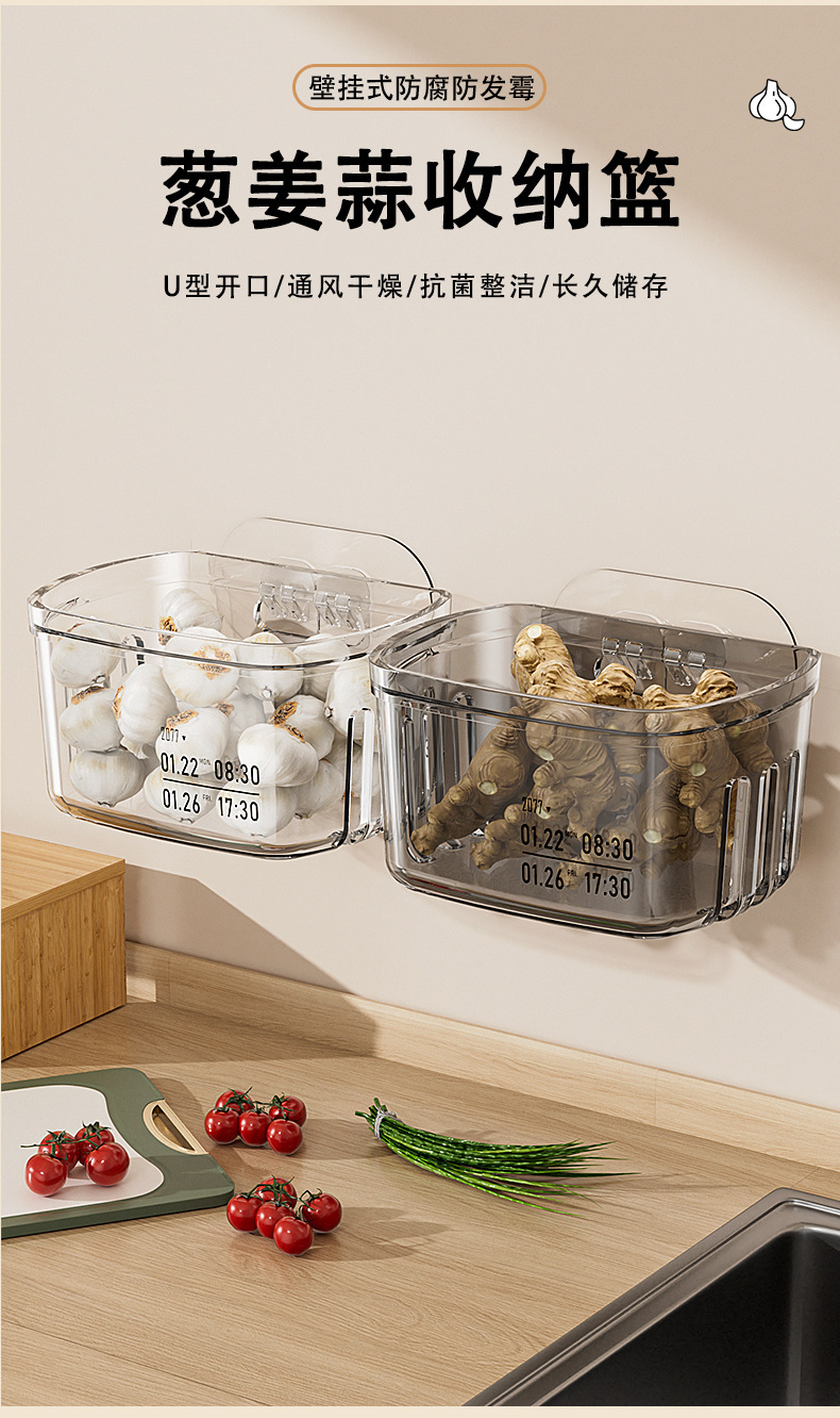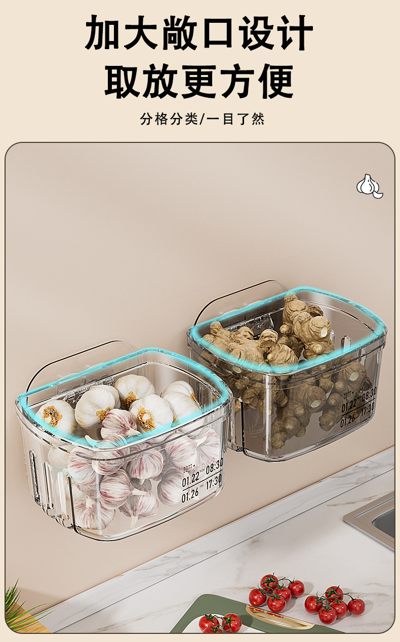 Cesta de almacenamiento de cocina, estante de almacenamiento de jengibre, estante de almacenamiento de ajo, caja de almacenamiento de pared, cesto de almacenamiento de jengibre, estante de almacenamiento de jengibre, estante de almacenamiento de jengibre