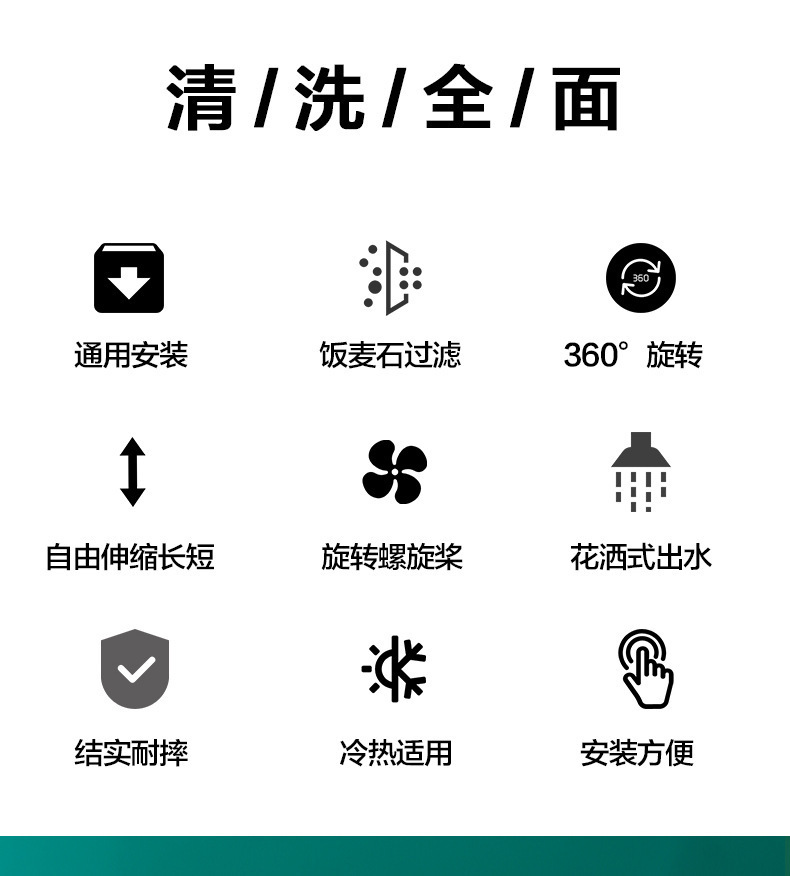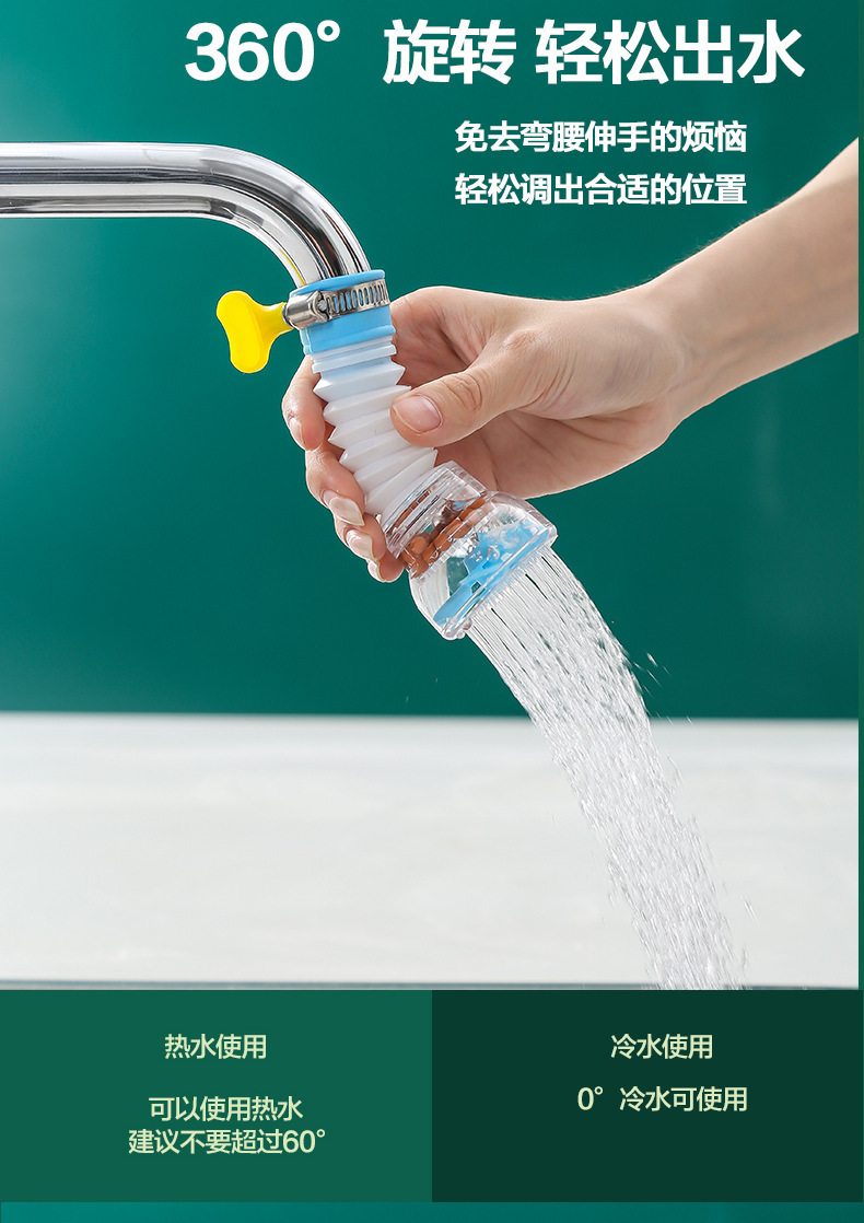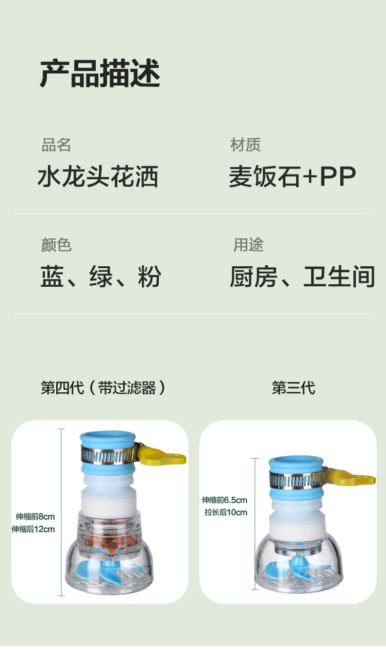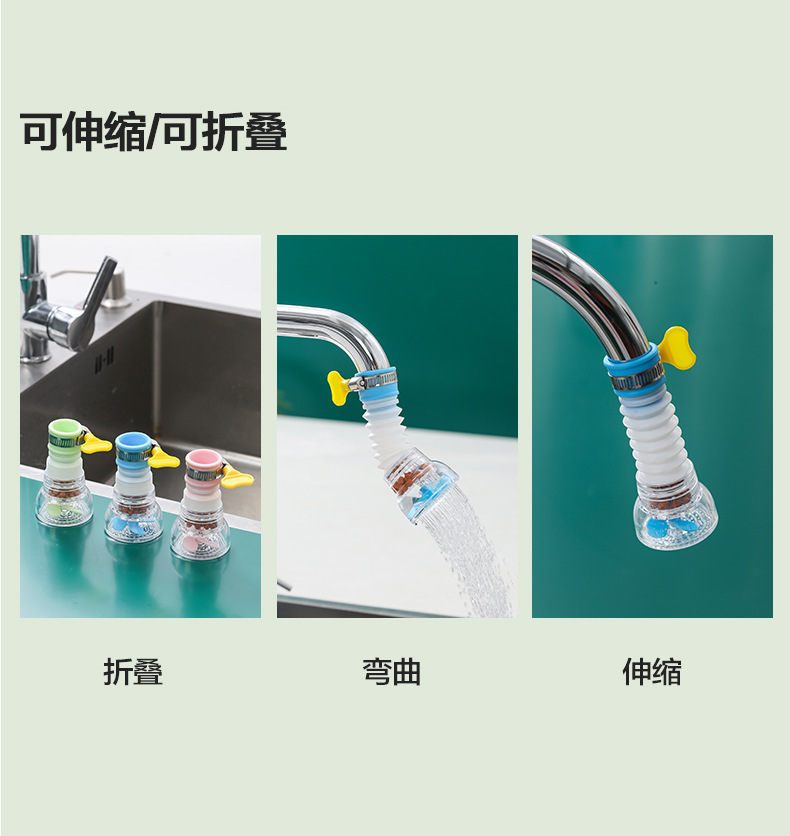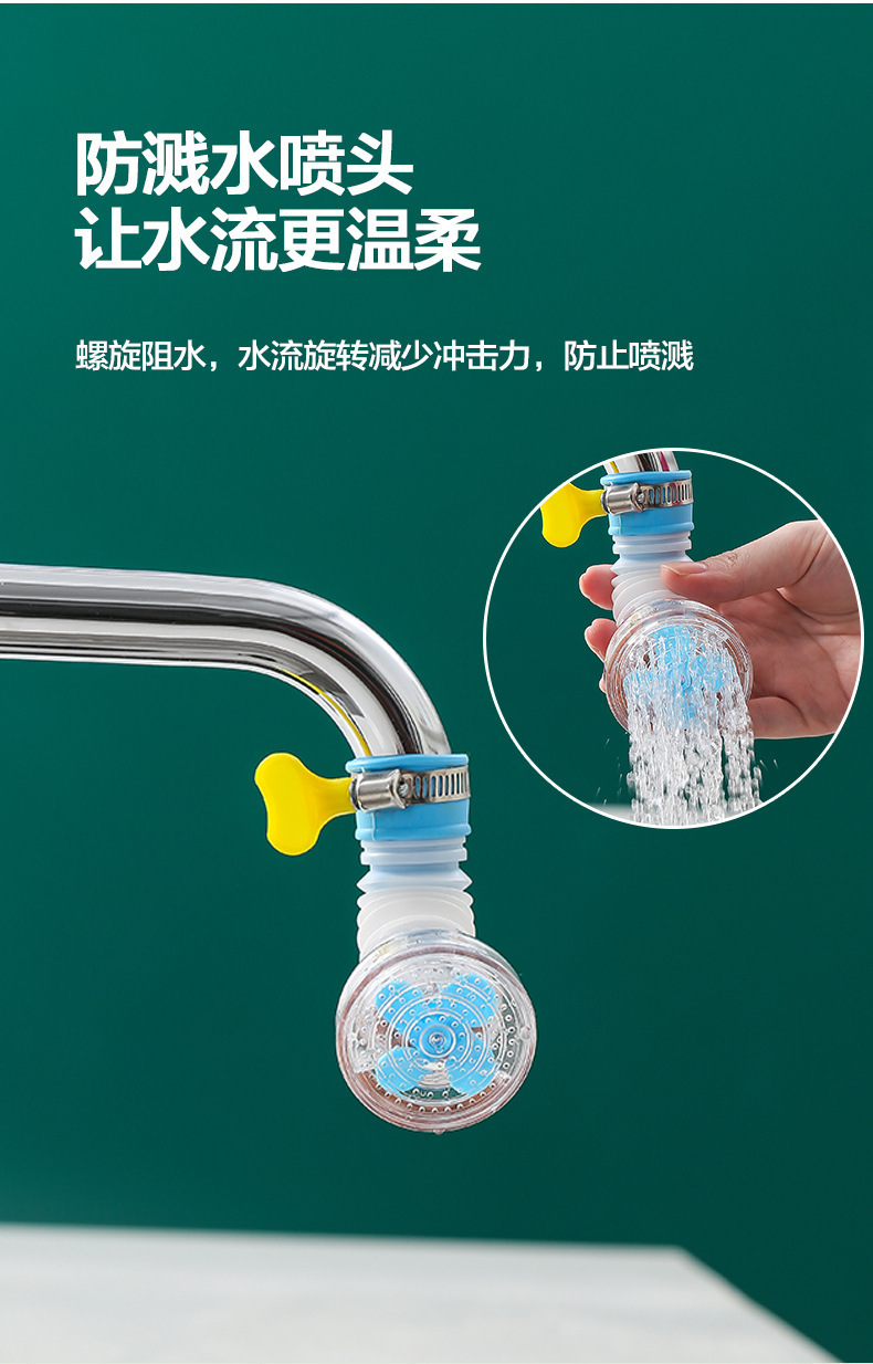 Filtro de ducha a prueba de salpicaduras de grifo, filtro de lavabo de cocina, rociador universal telescópico giratorio, ahorrador de agua