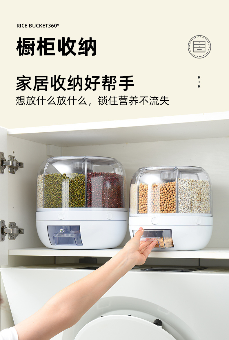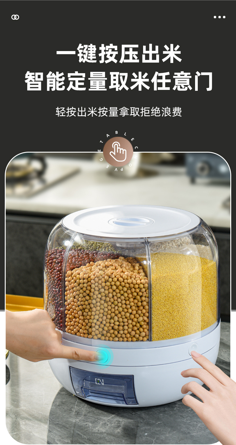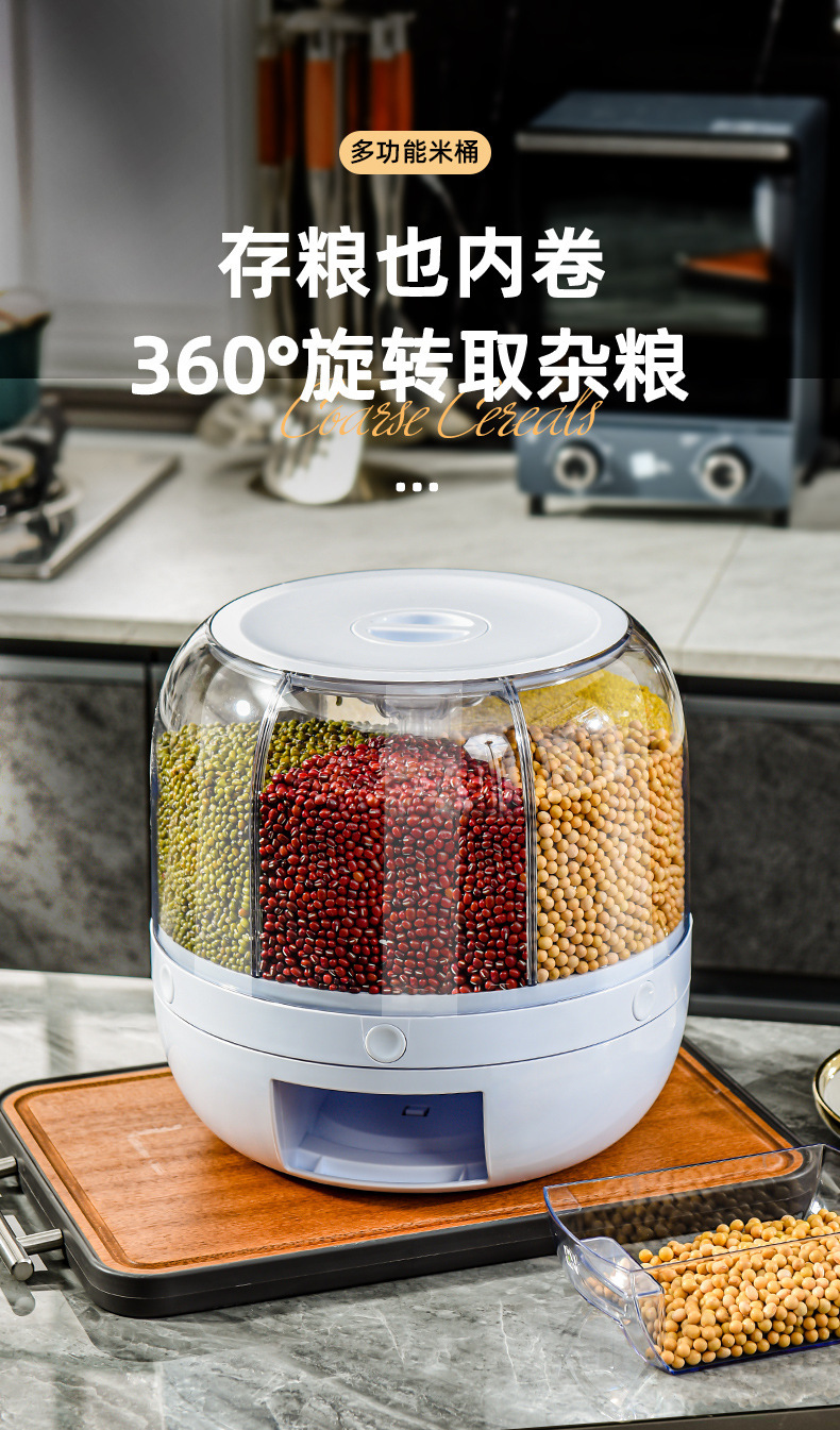 Tarro de granos giratorio transfronterizo sellado presionando Cubo de arroz tarro de almacenamiento de arroz caja de almacenamiento de granos a prueba de insectos a prueba de humedad