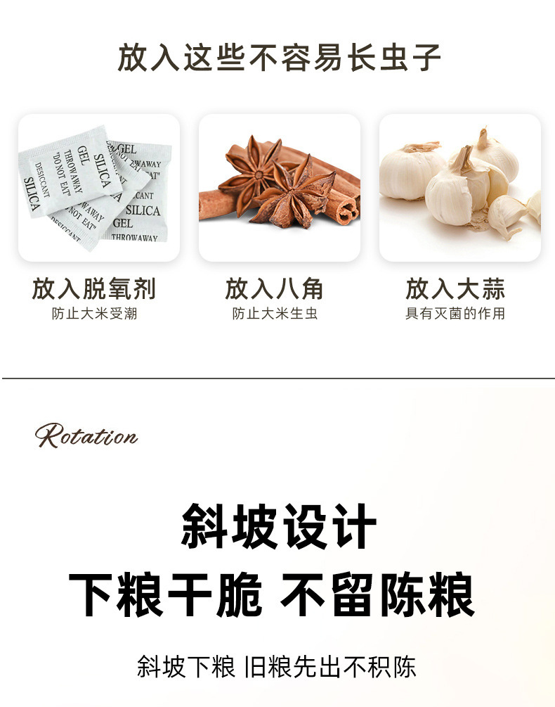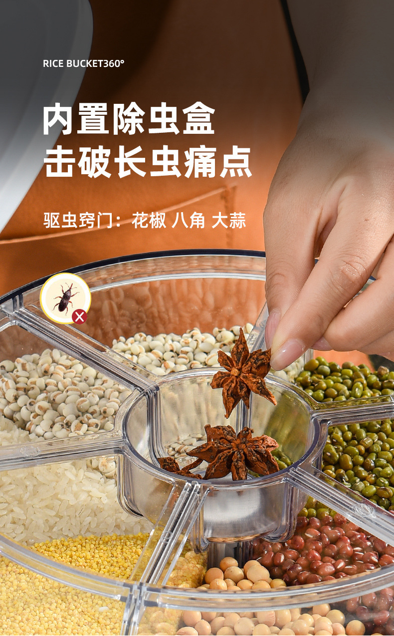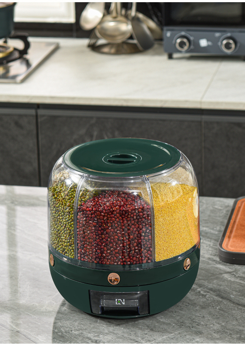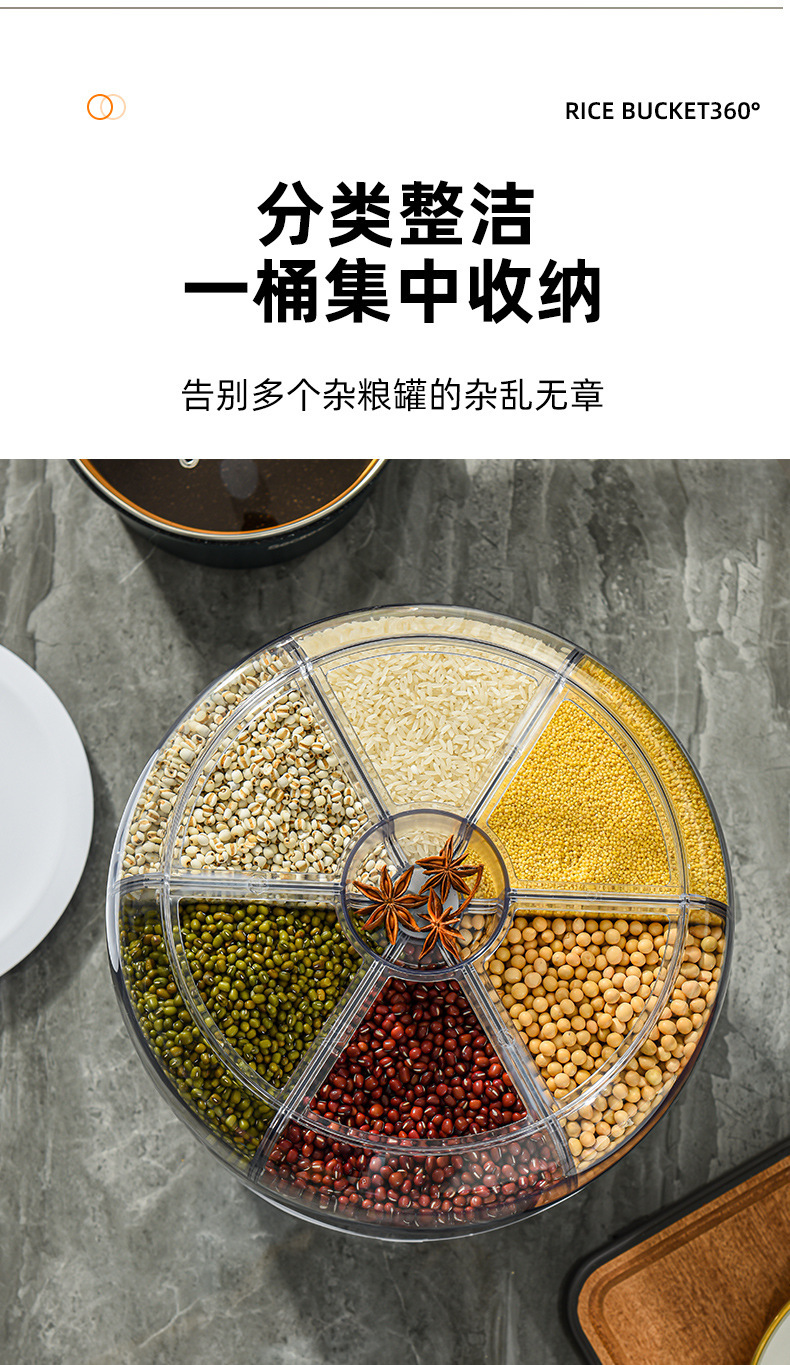 Tarro de granos giratorio transfronterizo sellado presionando Cubo de arroz tarro de almacenamiento de arroz caja de almacenamiento de granos a prueba de insectos a prueba de humedad