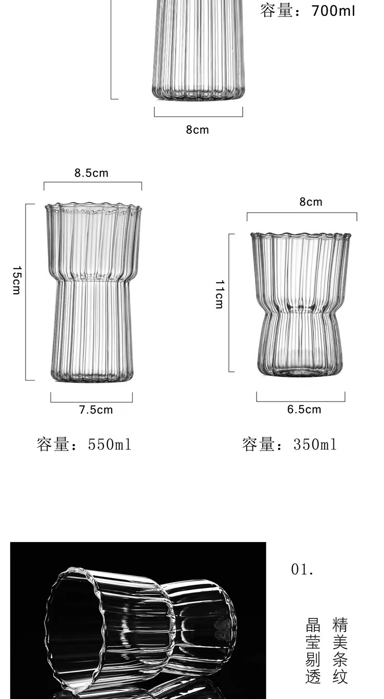 Taza de café americana de hielo vertical, taza de bebida de leche resistente a altas temperaturas, taza de vidrio de alta borosilicina