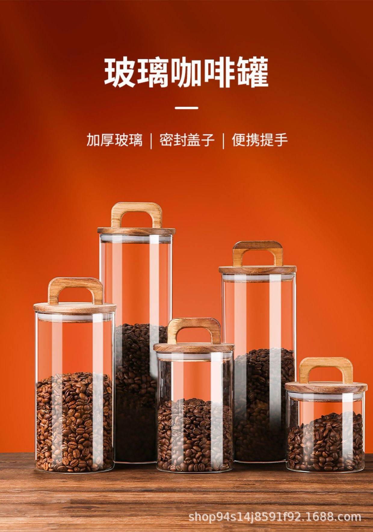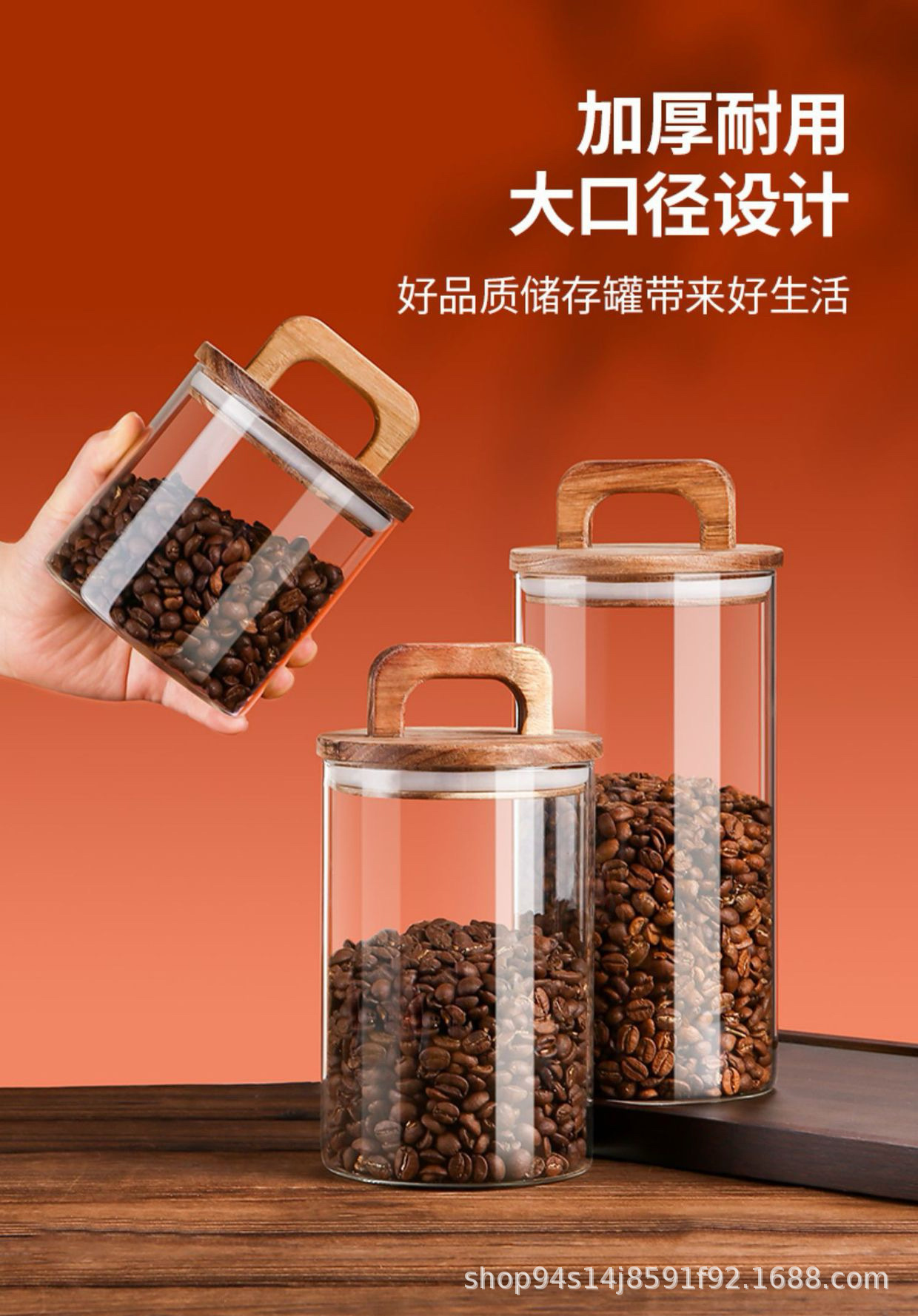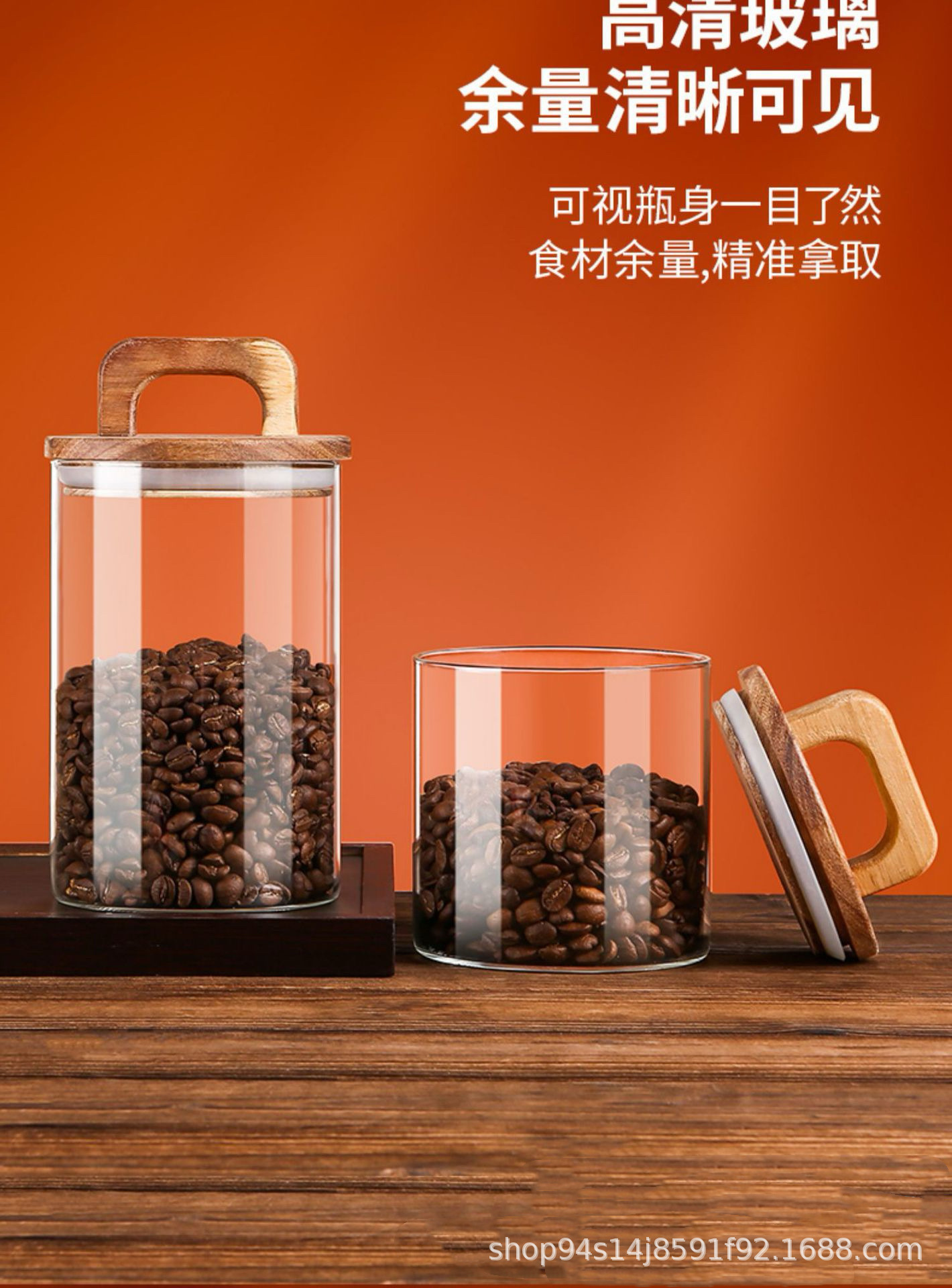 Alta borosilicona americana mango de madera tanque de almacenamiento de gran capacidad de cocina tanque de almacenamiento de granos de café multi-especificación sellado tanque de almacenamiento