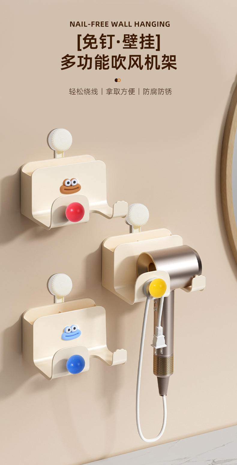 Estante de secador de pelo de dopamina Soporte de secador de pelo sin perforación Soporte de secador de pelo eléctrico de almacenamiento de pared de baño Soporte de secador de pelo eléctrico