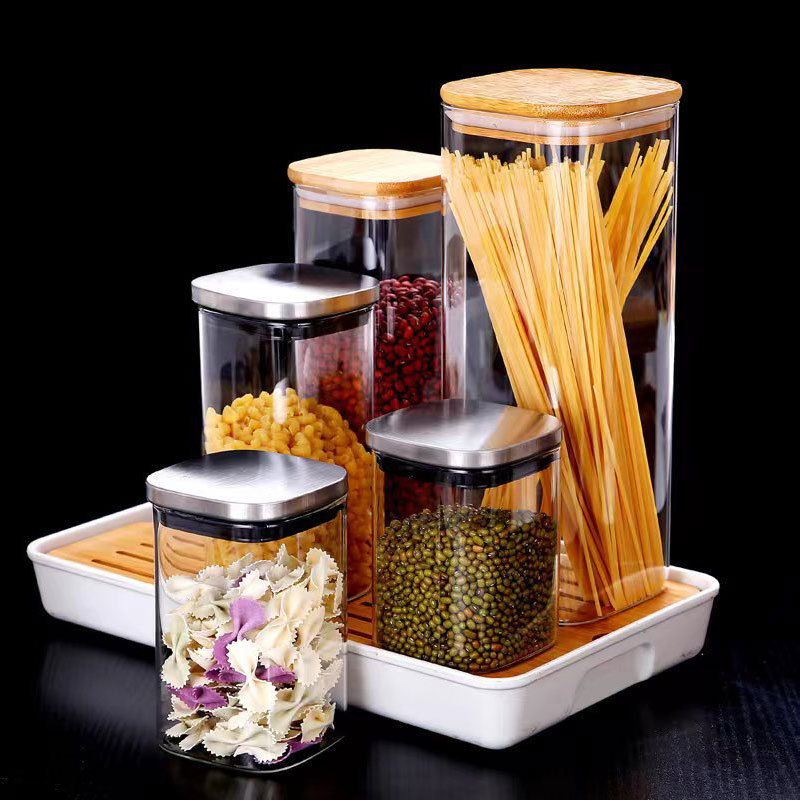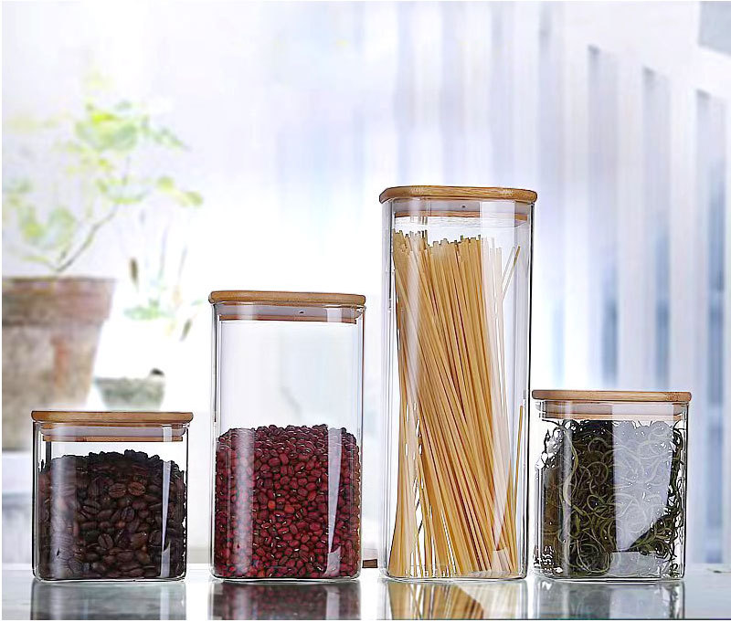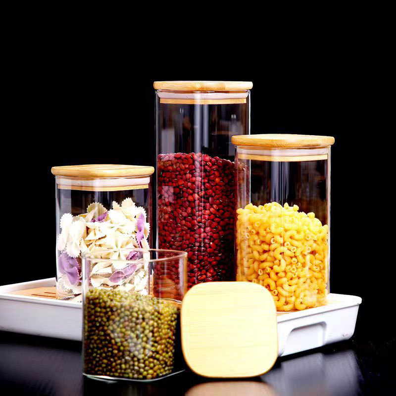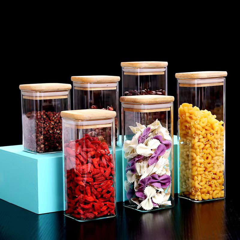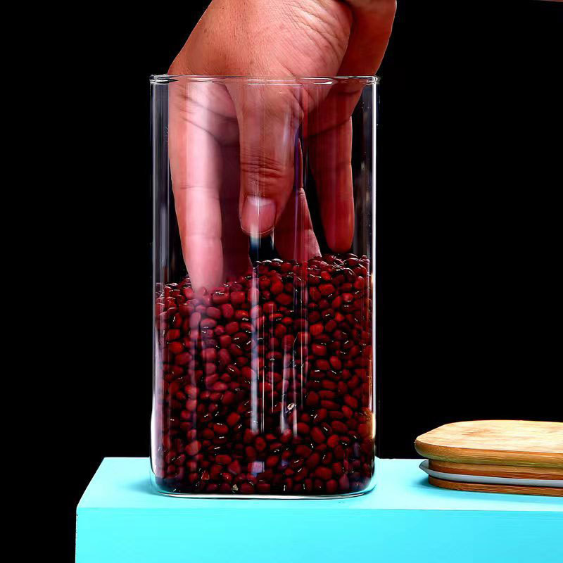 Al por mayor tarro de almacenamiento de vidrio cuadrado tarro de almacenamiento de granos transparentes tarro de té fruta almacenamiento de alimentos frasco sellado Cocina
