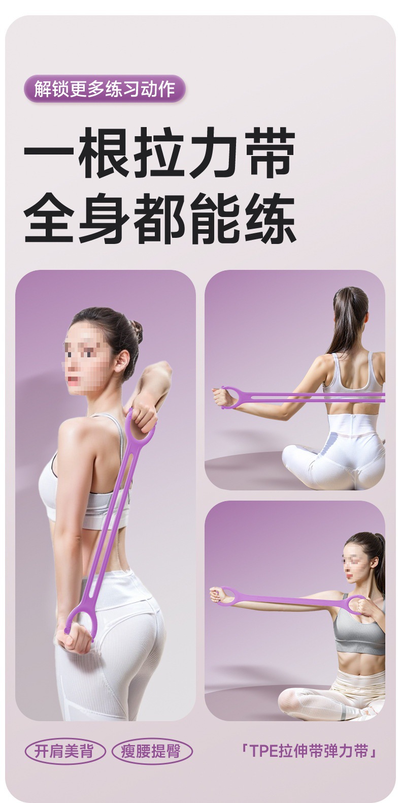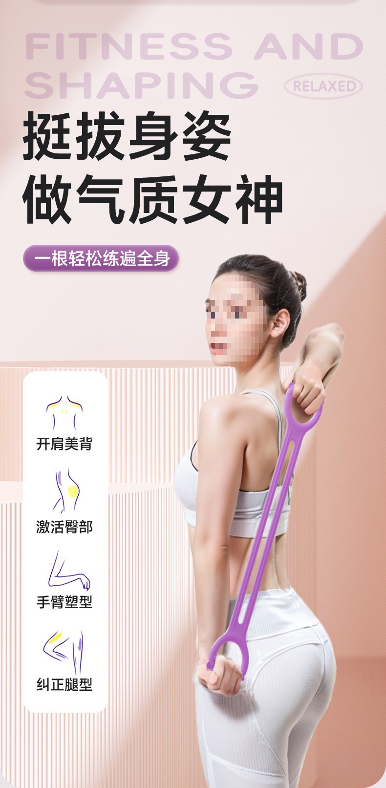 Yoga Dispositivo de estiramiento elástico, hombro abierto, hermoso artefacto de estiramiento de espalda, gimnasio, cuerda de tracción femenina de 8 caracteres, modelado corporal de espalda abierta