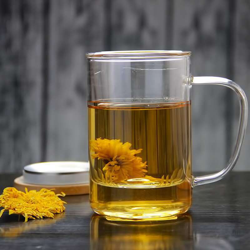 Cubierta de madera al por mayor cubierta de bambú de tres piezas de vidrio de borosilicato flor taza de té cubierta de madera engrosada fondo con tapa de filtro taza de té verde