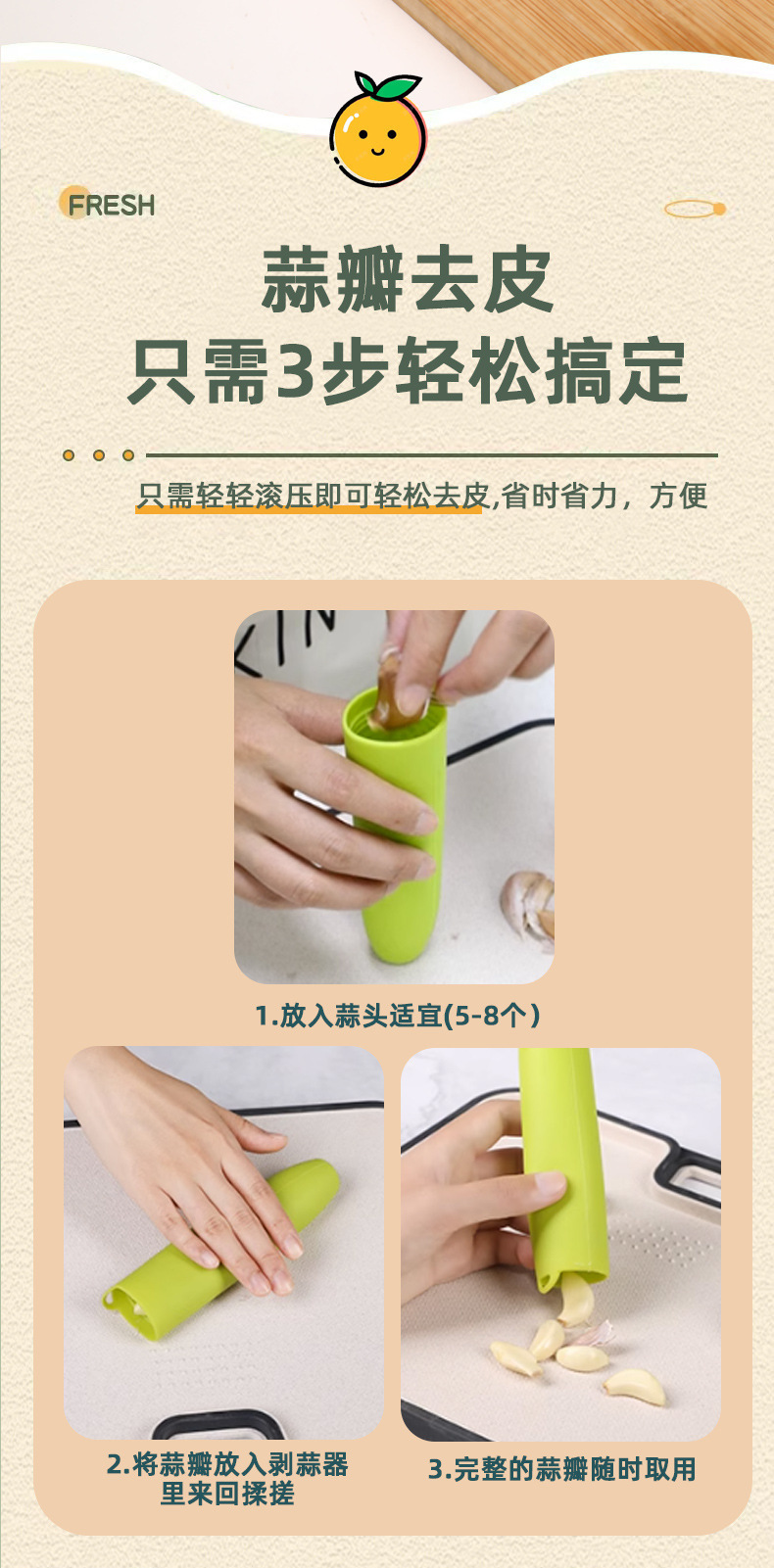 | Categoría del producto | Pelador de ajo / pelador de ajo |