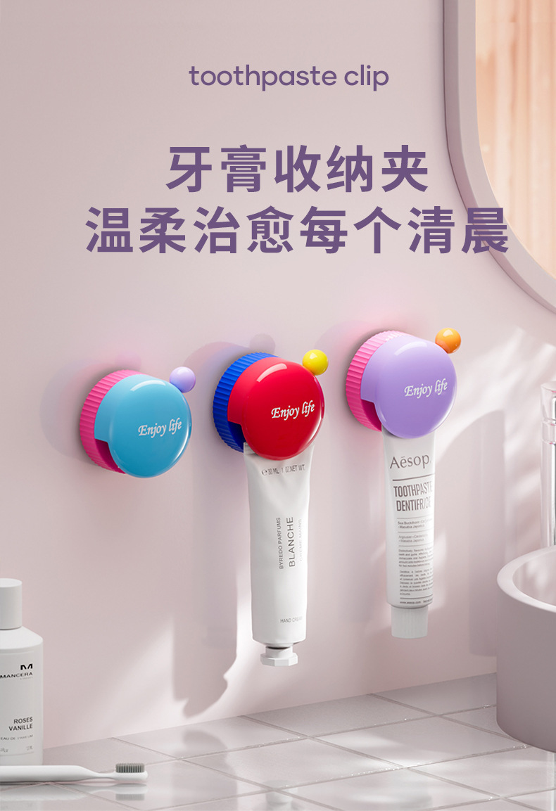 Ventosa Estante de pasta de dientes, baño de dopamina, baño, estante de pasta de dientes exprimido, clip de almacenamiento de limpiador facial montado en la pared