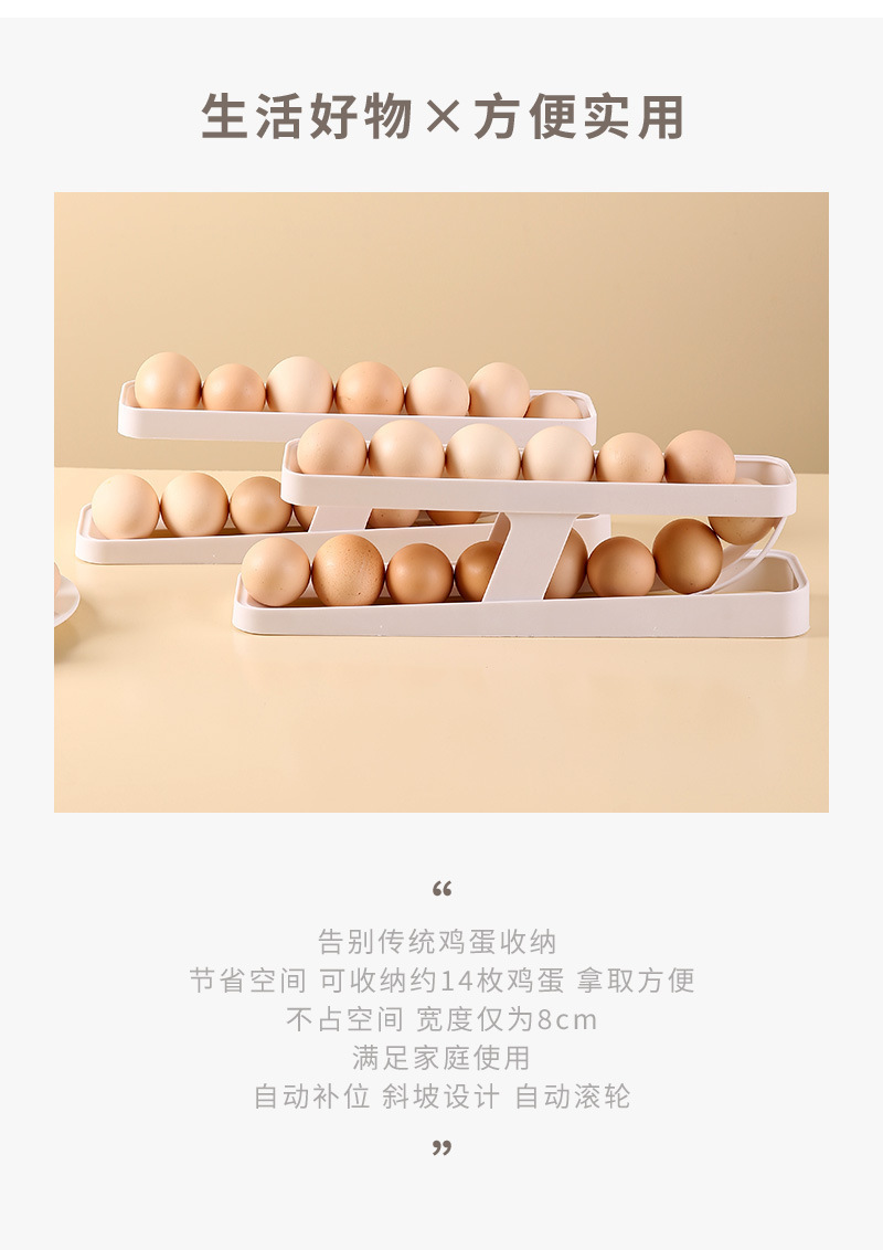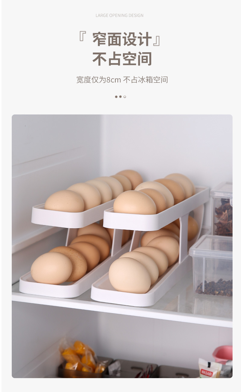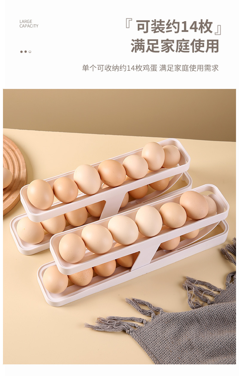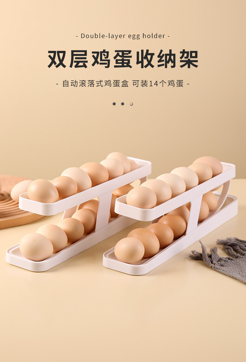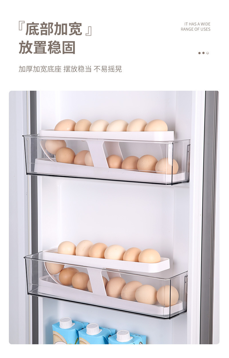 Caja de almacenamiento de huevos con tobogán, refrigerador fresco de verano, puerta lateral, rollo automático, refrigerador de cocina, estante para huevos de doble capa a prueba de caídas
