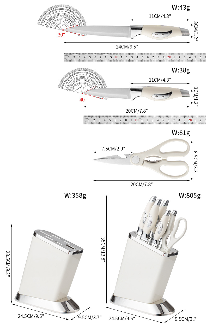 Amazon acero inoxidable utensilios de cocina portacuchillo conjunto completo de utensilios de cocina set asiento elíptico set 7 piezas
