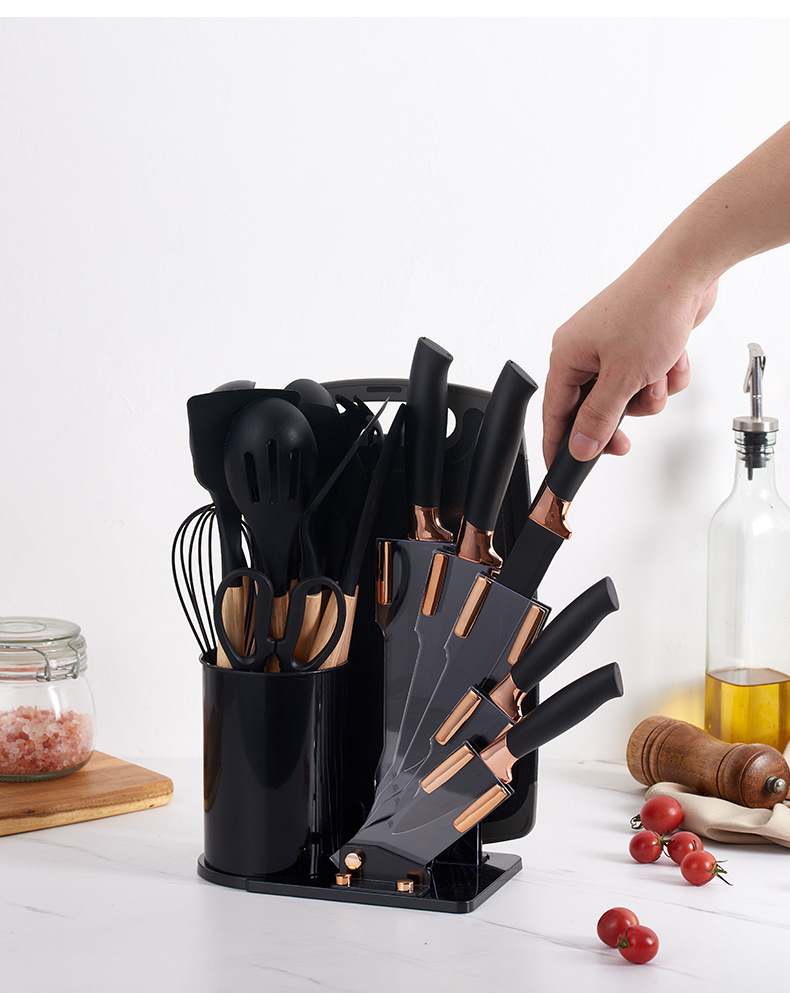 Ventas transfronterizas de silicona de cocina 19 piezas de cuchillos de cocina antiadherente de silicona conjunto de cuchillos de cocina