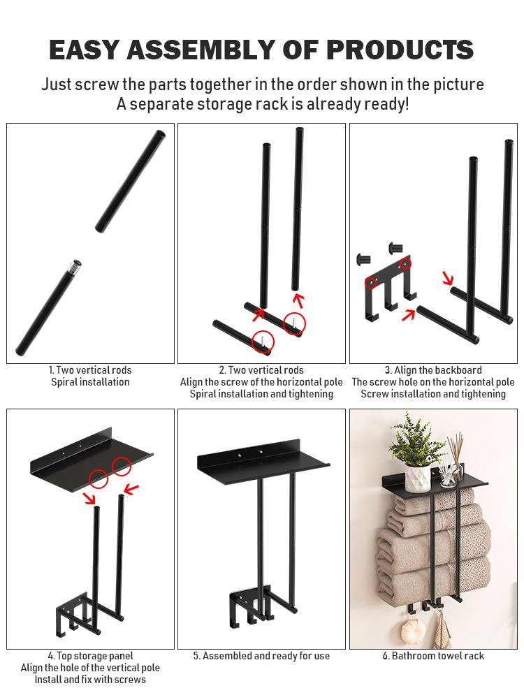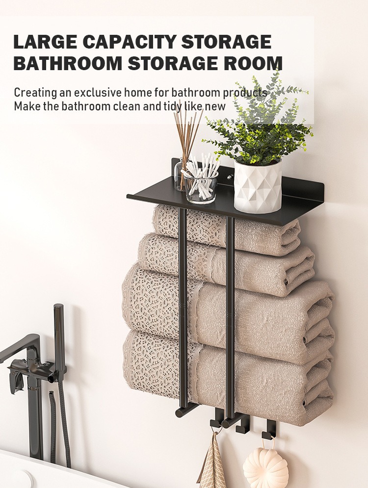 Transfronterizo sin perforación estante de toallas de baño desmontable estante de toallas de baño multicapa estante de toallas de pared de baño