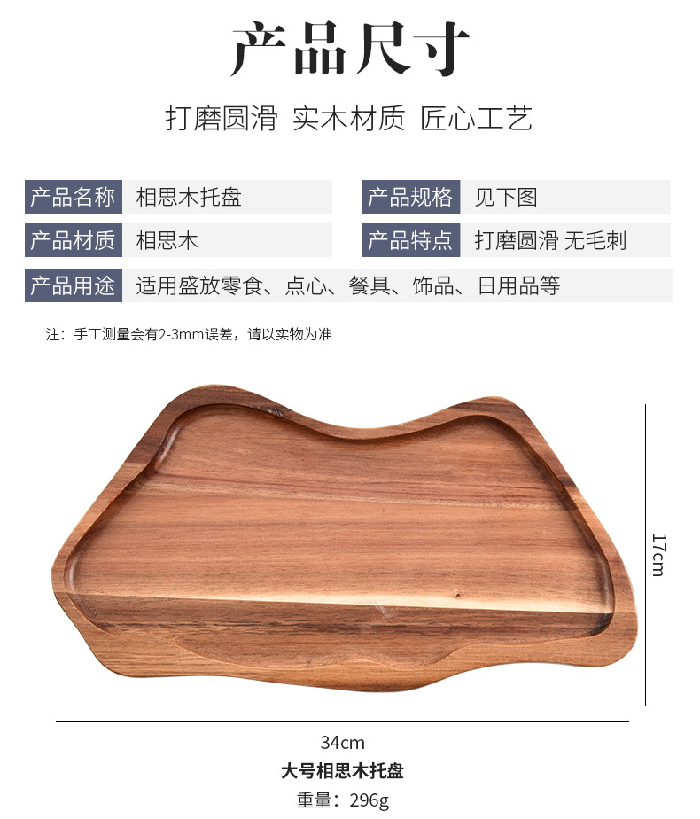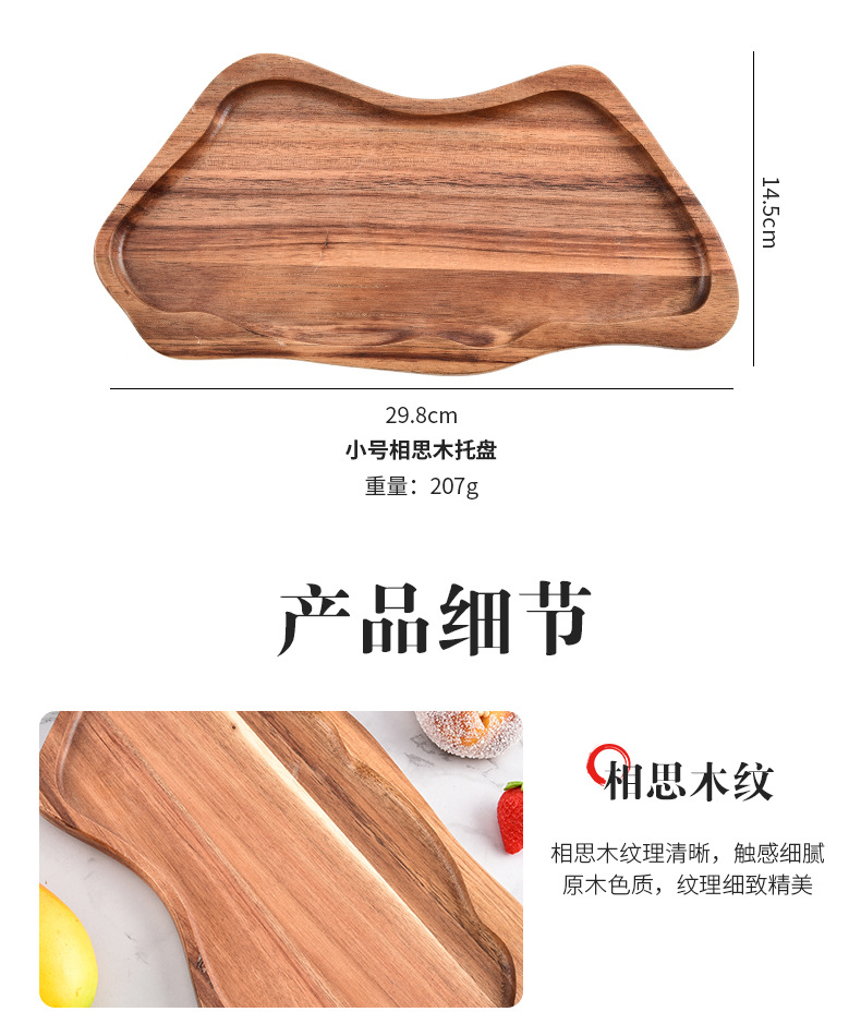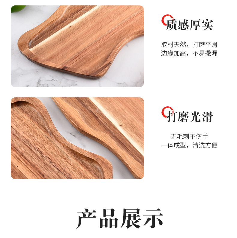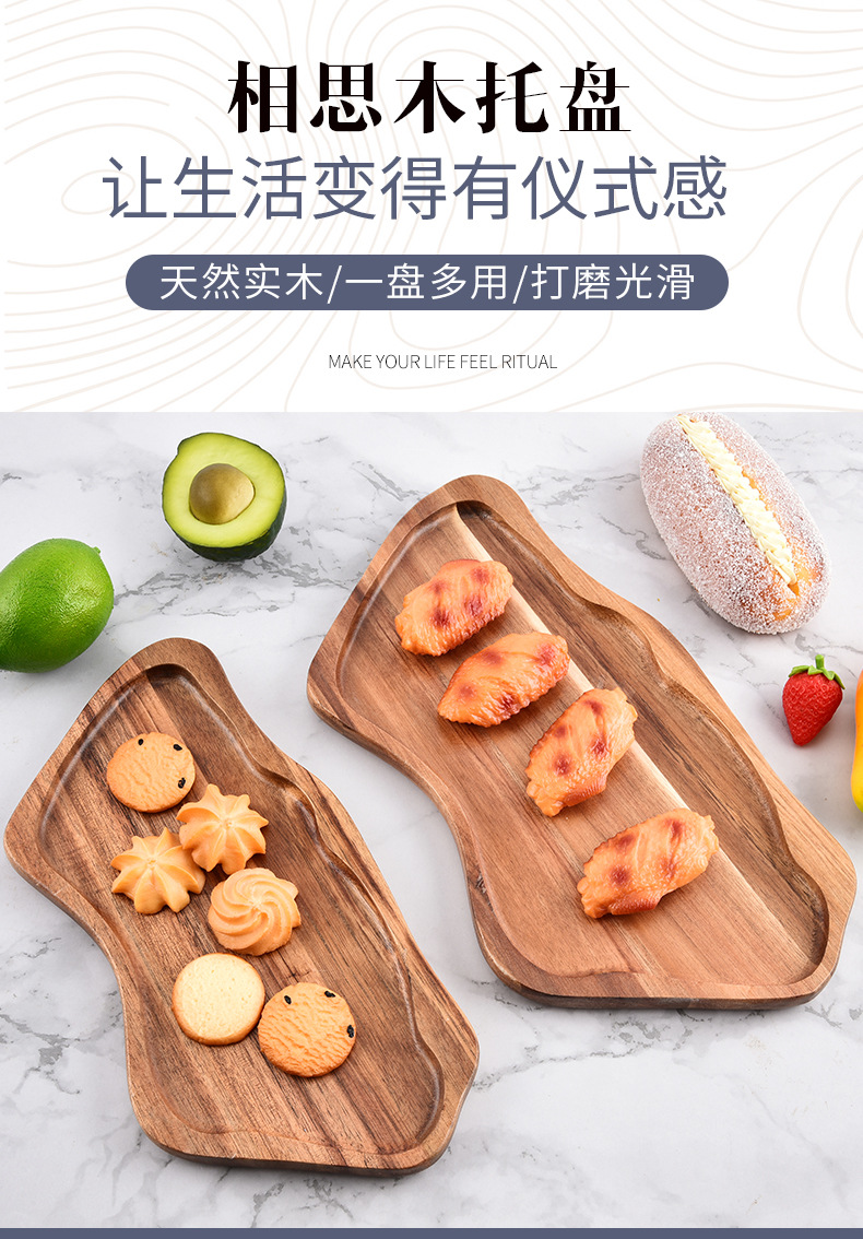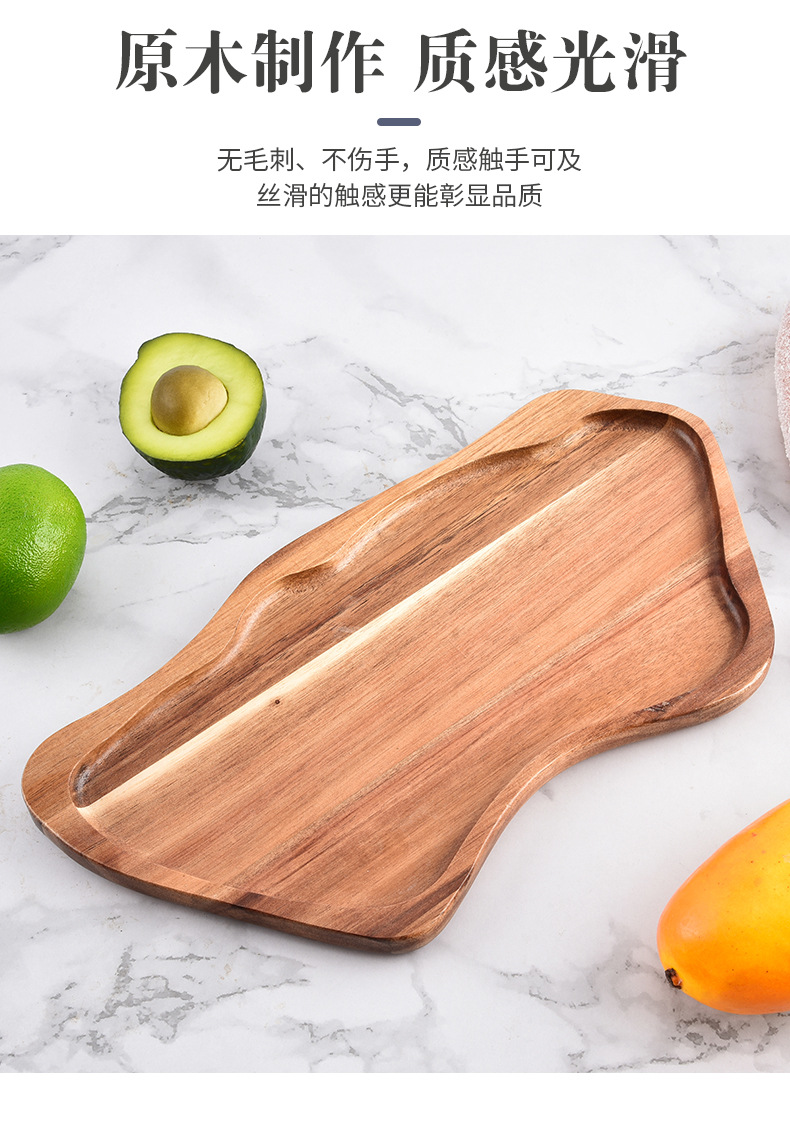 Transfronteriza venta directa de bandejas de madera acacia irregular sushi pizza pan pan madera bocadillos tablero de corte bandeja en forma de M
