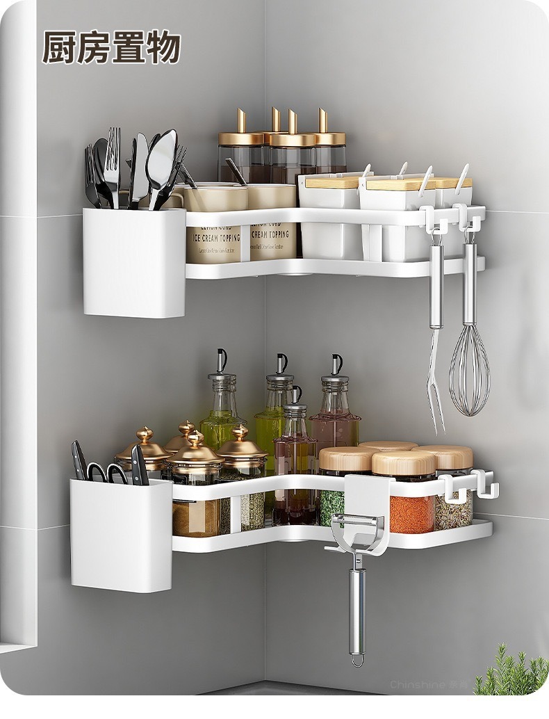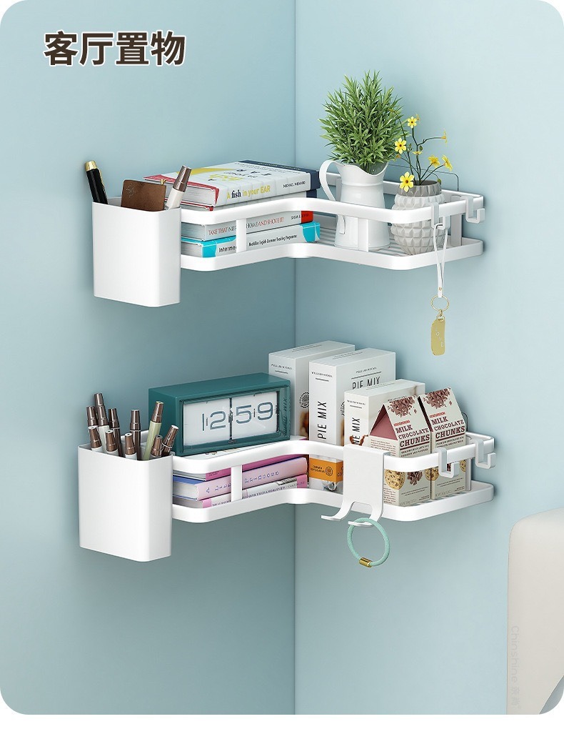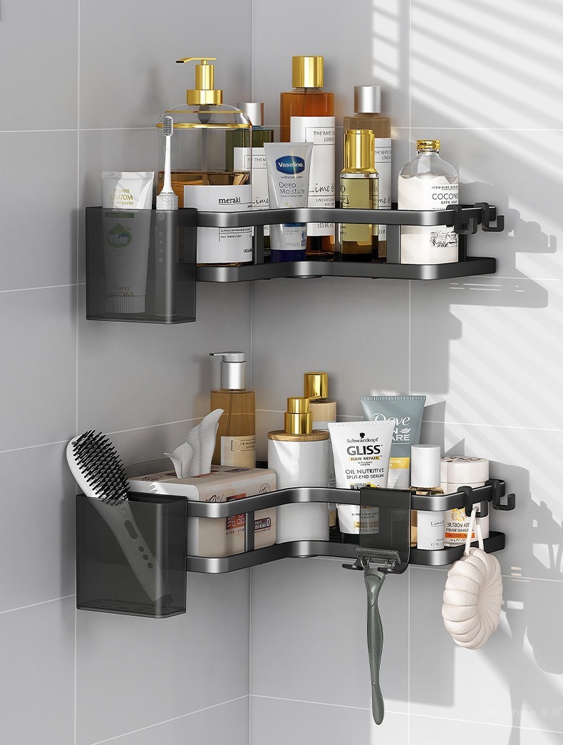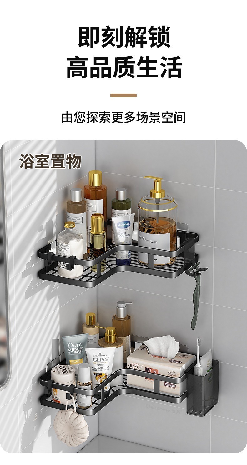 Estante triangular para baño Estante de almacenamiento de múltiples capas para baño sin perforación Estante de almacenamiento para artículos de tocador de pared para el hogar