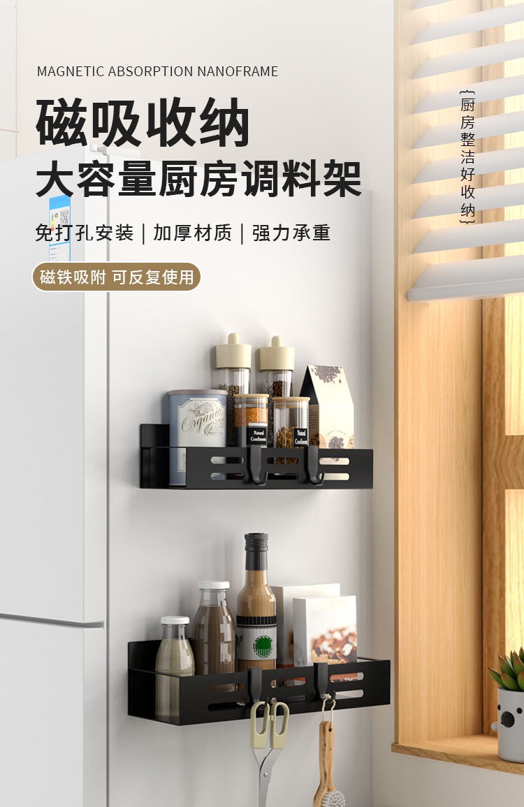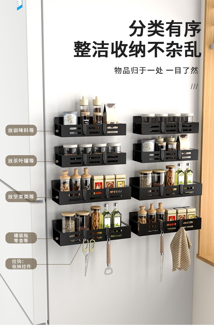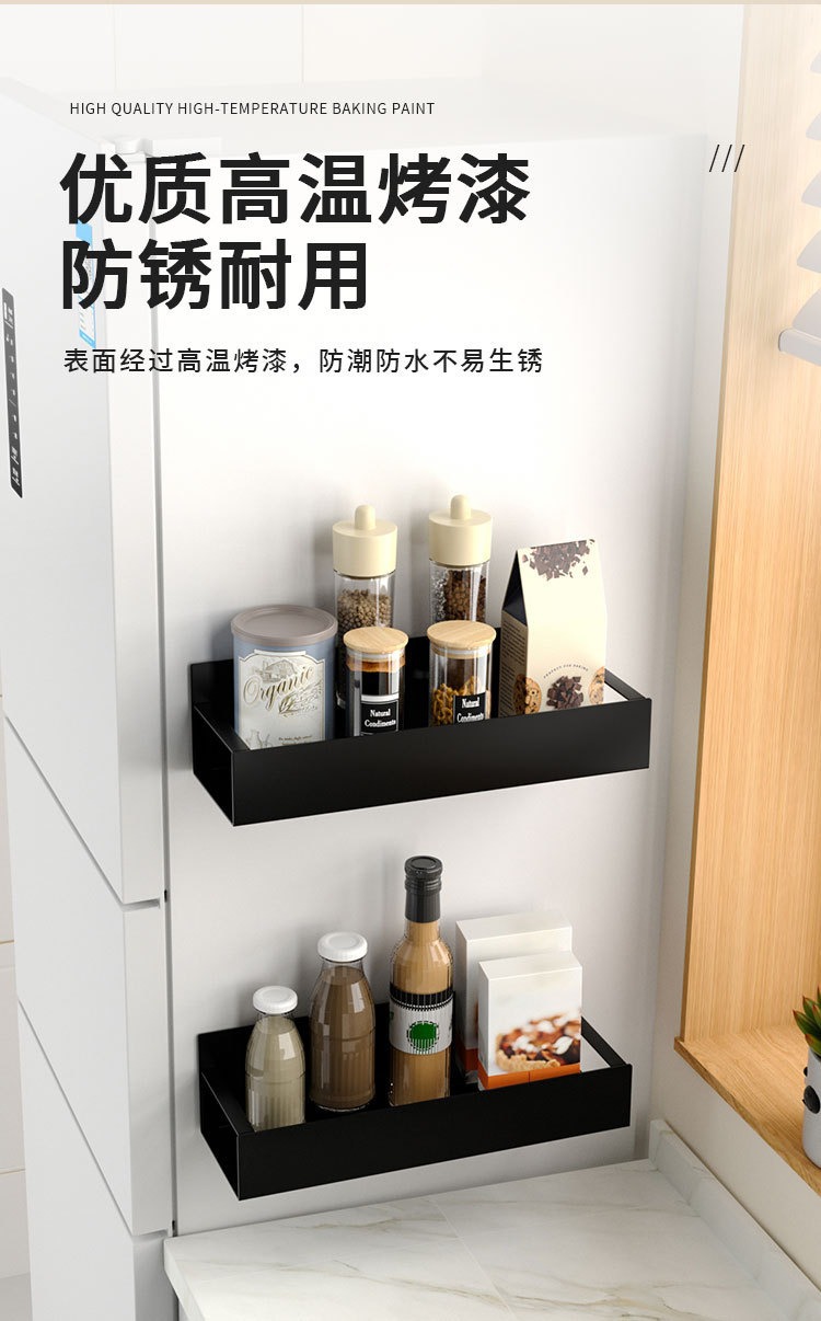 Soporte de condimento de pared montado en la pared transfronteriza estante de almacenamiento lateral del refrigerador estante de almacenamiento con estante de condimento magnético estante de acabado del refrigerador