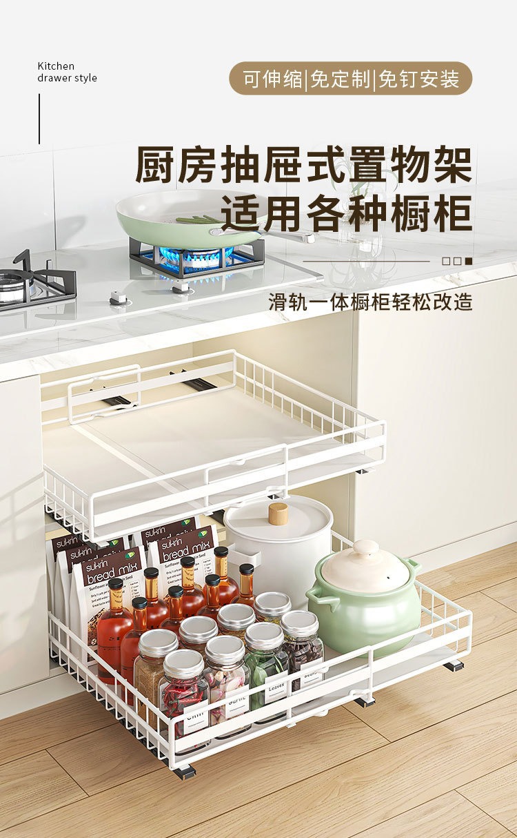 Estante extraíble del gabinete, cocina doméstica, tanque de condimento multifuncional, tienda departamental, estante de almacenamiento, fregadero, canasta