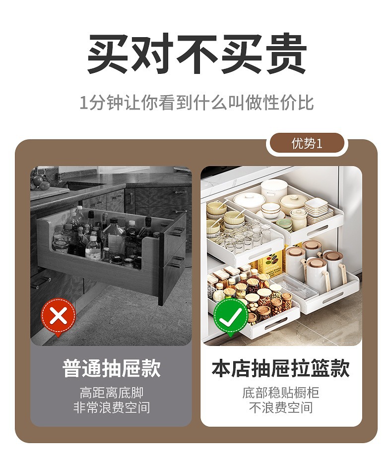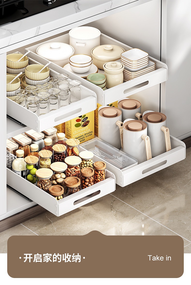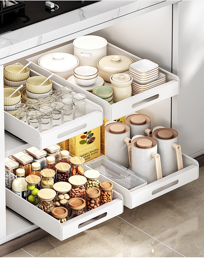 Cajón interior del gabinete estante de almacenamiento de la cocina almacenar canasta de extracción estratificado condimentar platos bandeja de platos caja de extracción tipo de almacenamiento
