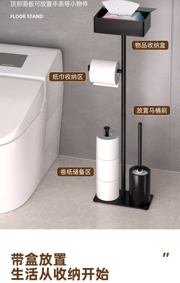 Estante de papel higiénico vertical transfronterizo con cepillo de inodoro integrado marco de acabado de piso de baño limpio cepillo de inodoro caja de toallas húmedas a prueba de humedad