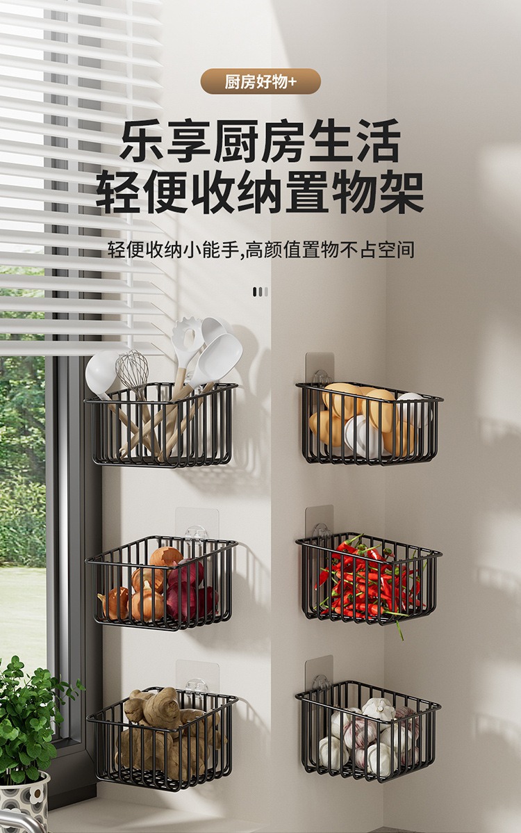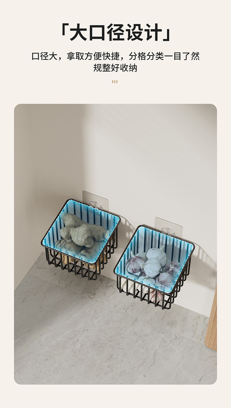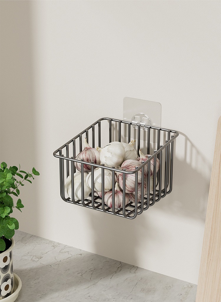 Vegetales de cocina gancho de ajo pequeña cesta de almacenamiento de jengibre tipo pared ajo acabado de cocina