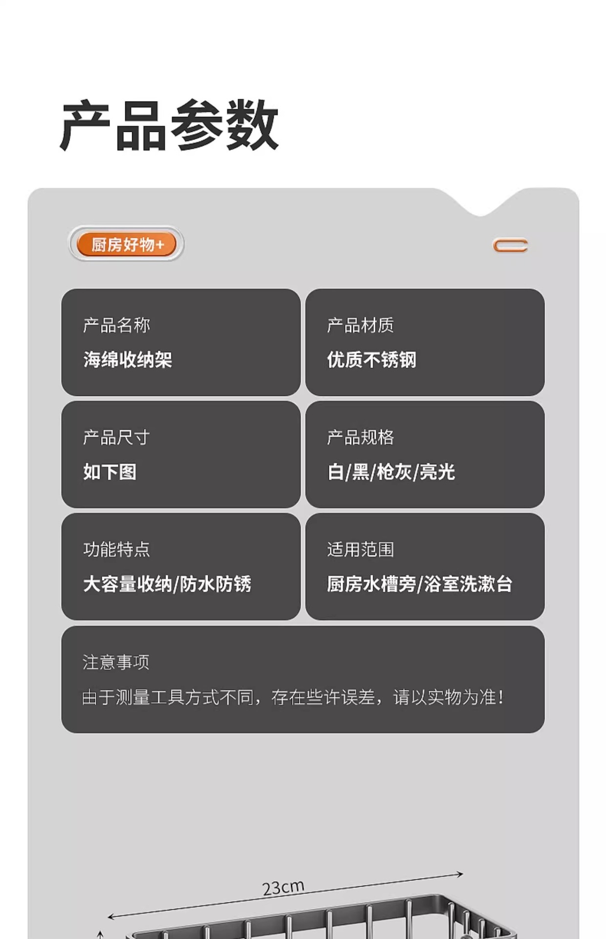 ![[Sin varilla] Estante de esponja negro](https://cbu01.alicdn.com/img/ibank/O1CN01IMVJiG1pVgBmqSBPo_!!2216771825366-0-cib.jpg)