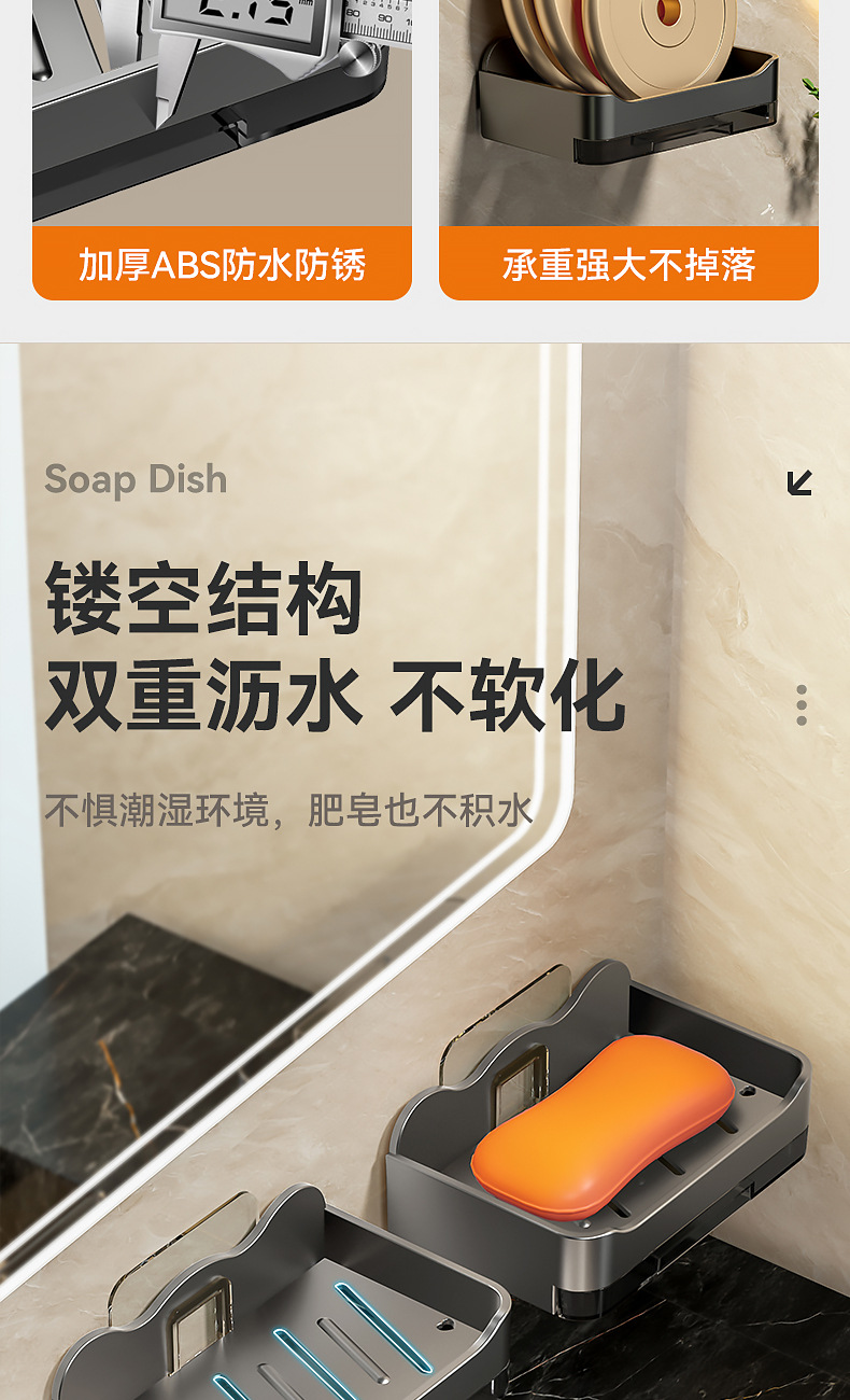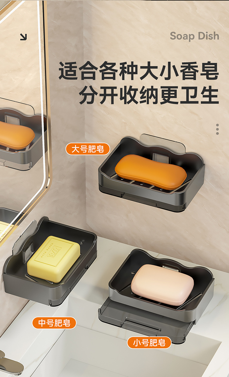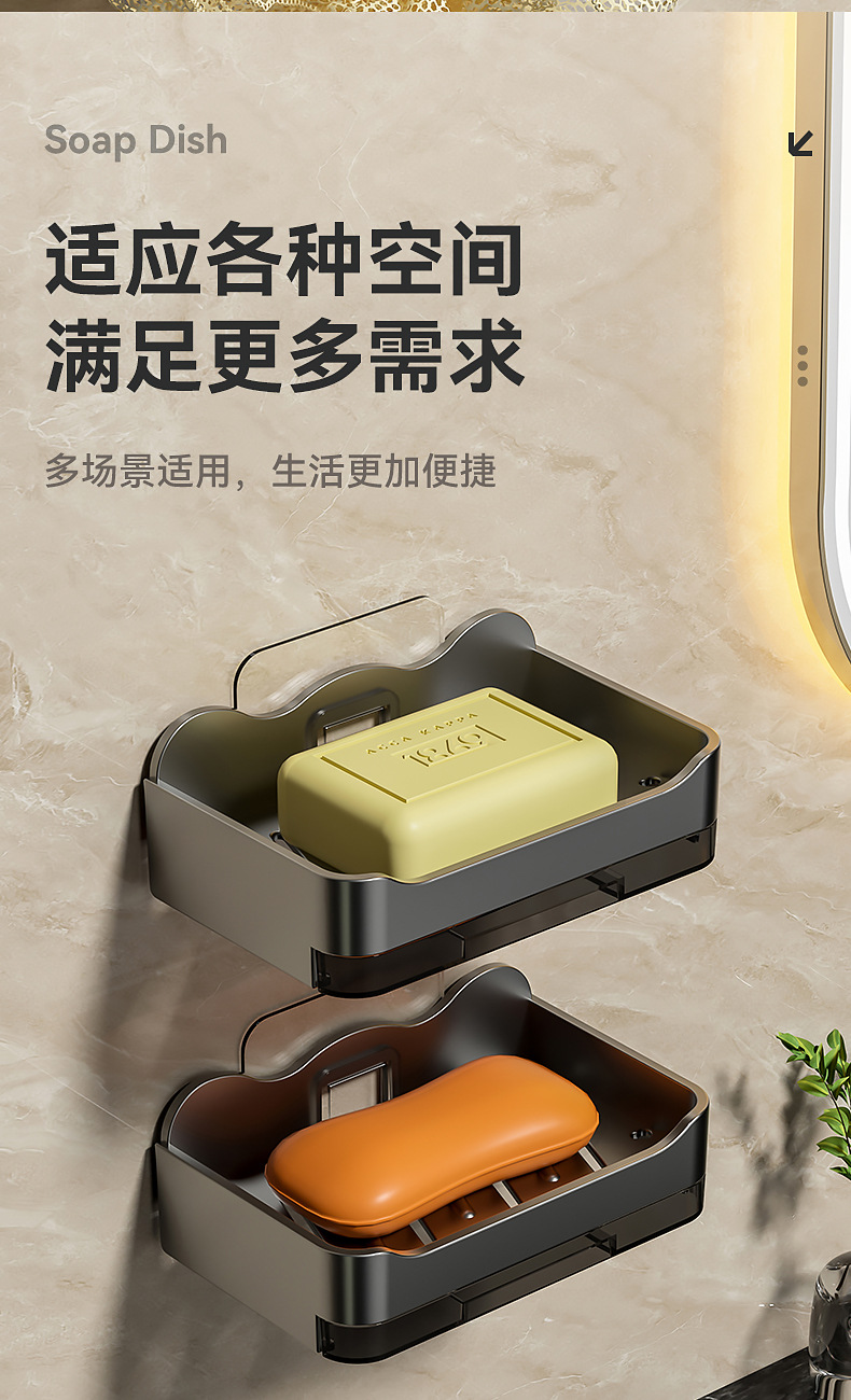 Caja de jabón sin perforaciones Baño de pared montado en la pared Estante de jabón Baño Caja de drenaje de jabón de doble capa
