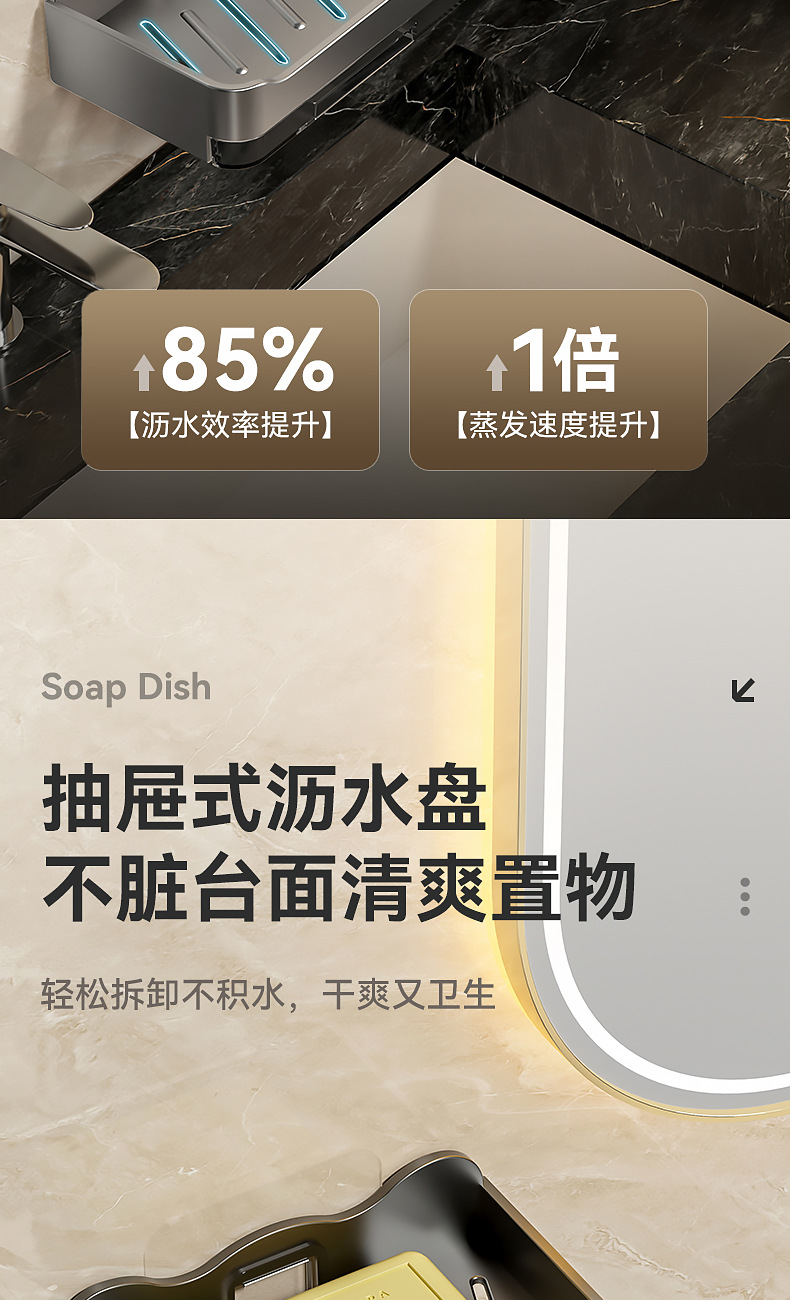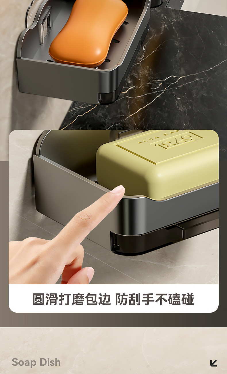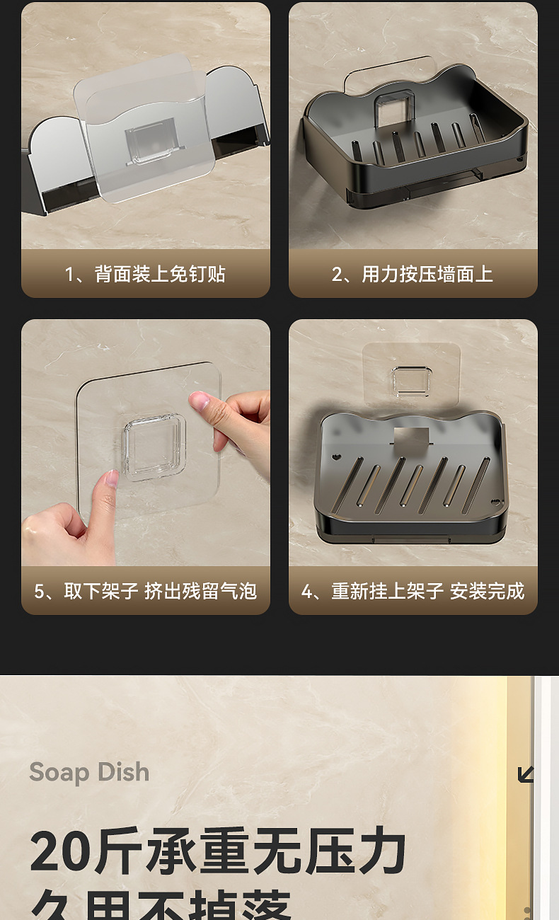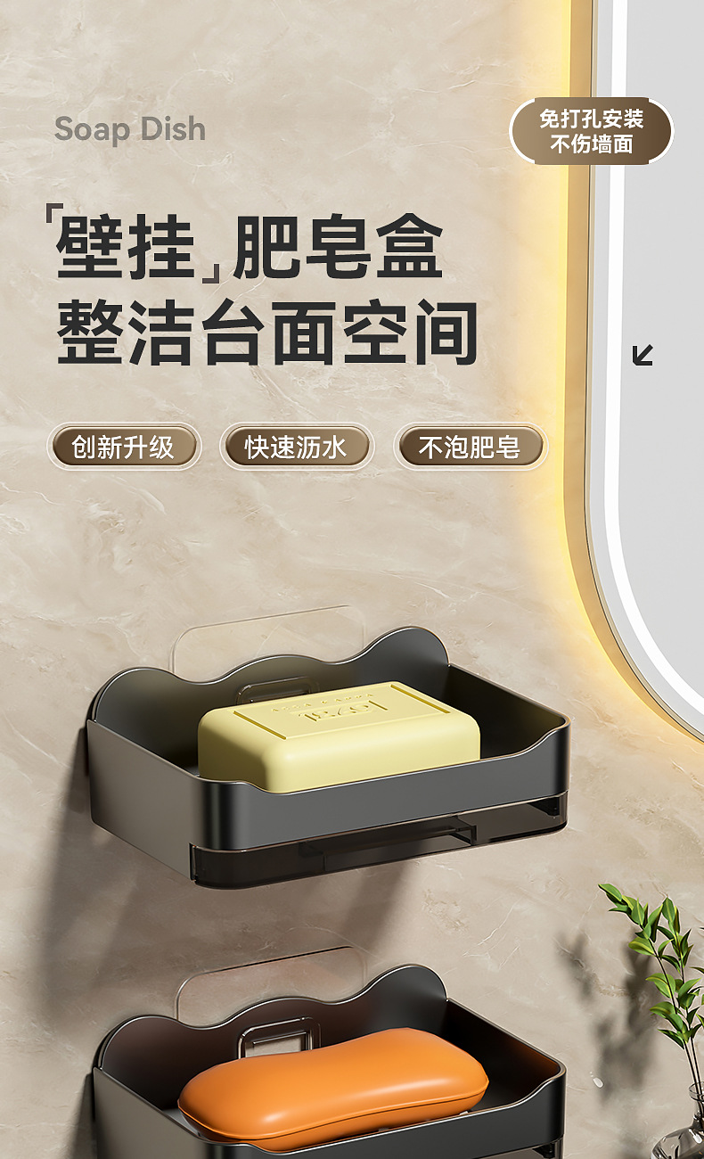 Caja de jabón sin perforaciones Baño de pared montado en la pared Estante de jabón Baño Caja de drenaje de jabón de doble capa