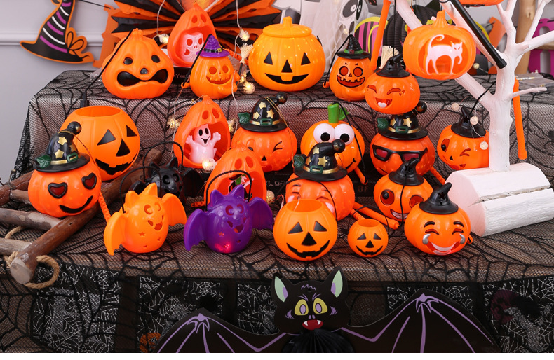 Linterna de Calabaza de Halloween, Decoraciones Brillantes de Halloween, Accesorios, Adornos, Cubo de Calabaza para Niños, Decoración para Fiestas