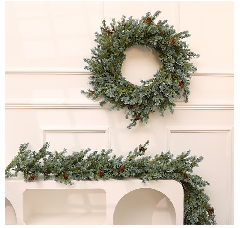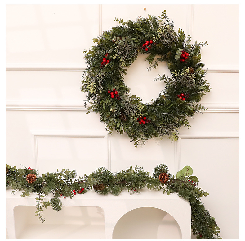 | Colores | Ratán de eucalipto 150cm,Ciprés 270cm,Piñas tridimensionales de dos colores PE135cm,Pegamento suave bicolor 135cm,Piñas de suelo natural 135cm,Pegamento blando de Falksona 50cm,Fruta roja eucalipto 60cm |
