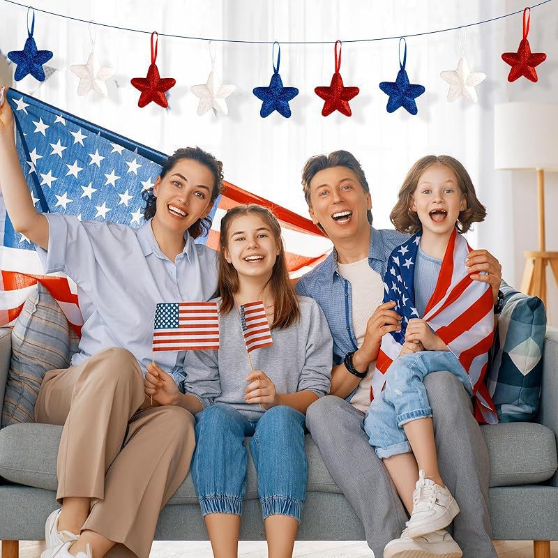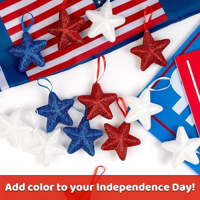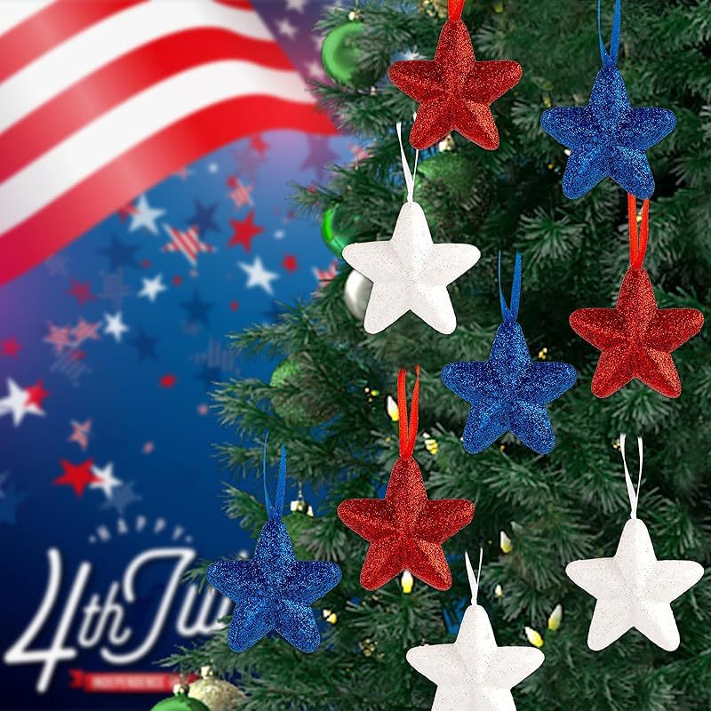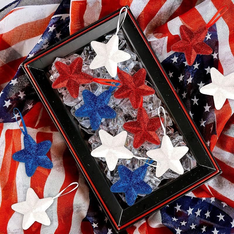 Decoraciones del Día de la Independencia DIY 24 piezas de decoración roja, blanca y azul 6CM pentacos al por mayor