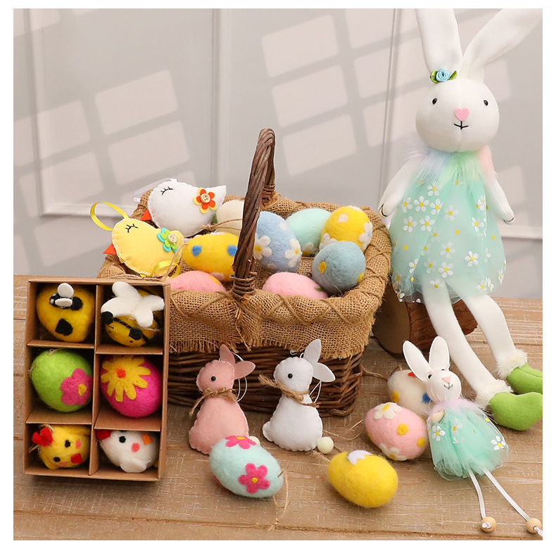 Nuevos productos transfronterizos muñecas de conejo de Pascua cestas de rábano adorables muñecas de conejo decoraciones navideñas