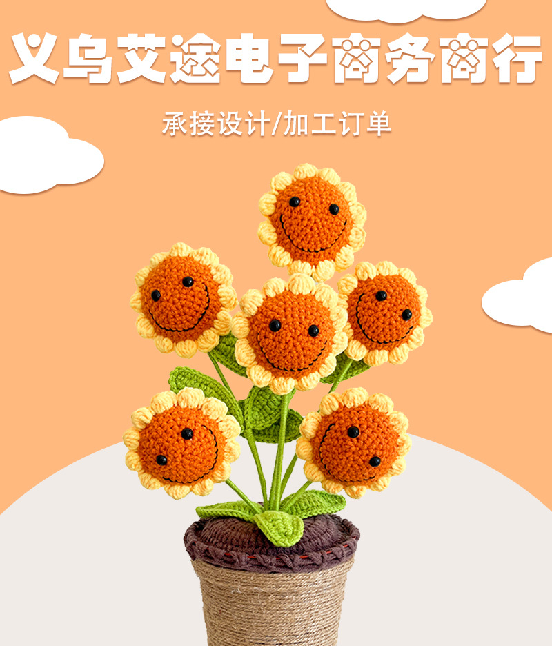 Amazon transfronterizo simulación verde planta hecha a mano DIY girasol Mini en maceta de lana tejida bonsai adornos al por mayor