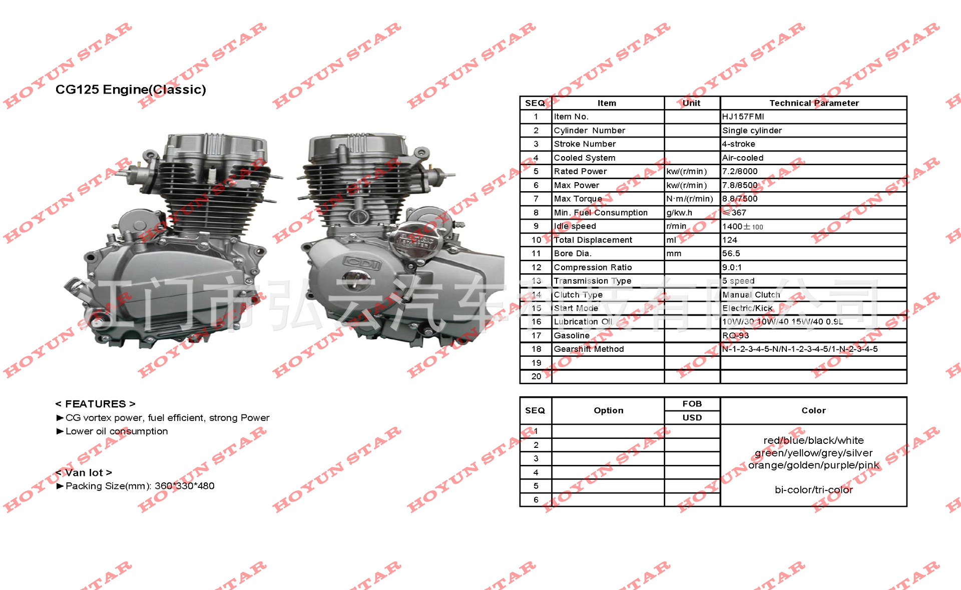 Motor de motocicleta de alta calidad de un solo cilindro refrigerado por aire de salida de cuatro tiempos CG125 adecuado para motocicletas como VENTO
