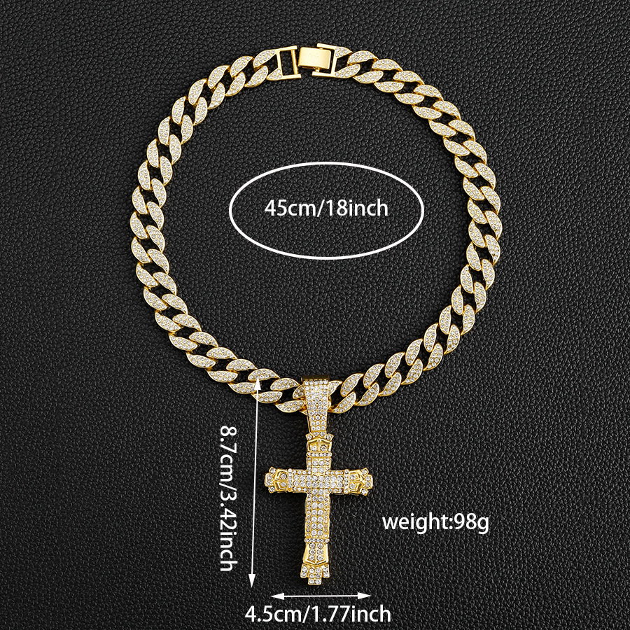 Nuevo colgante cruzado de hip-hop transfronterizo, collar de cruz de aleación de zinc con diamantes completos, creativo, personalizado, europeo y americano, para hombres