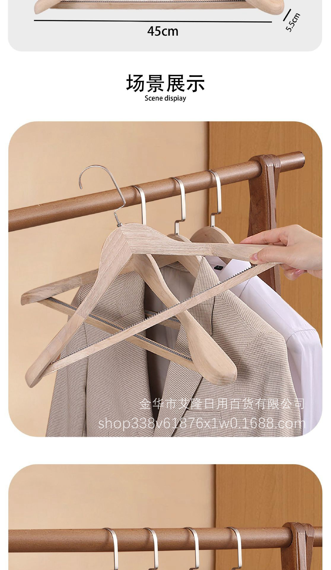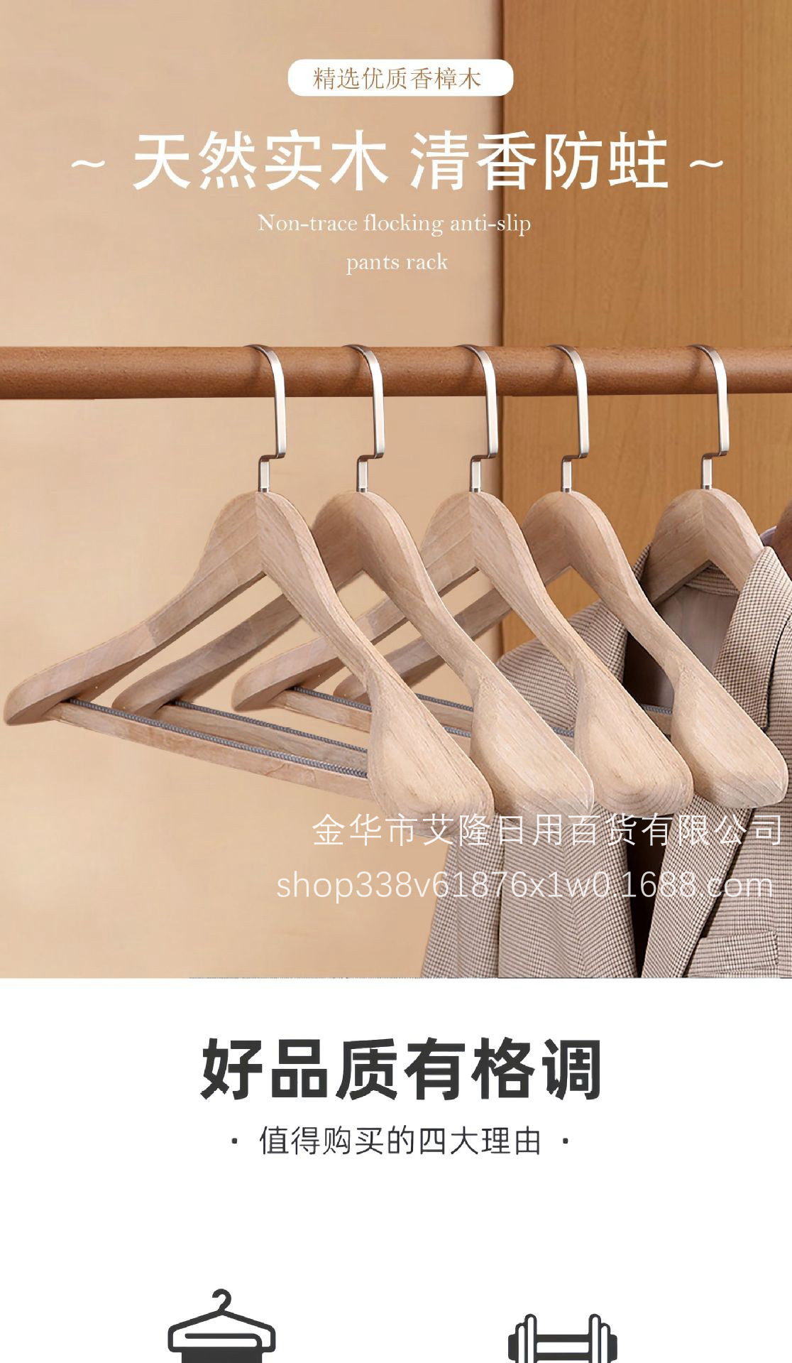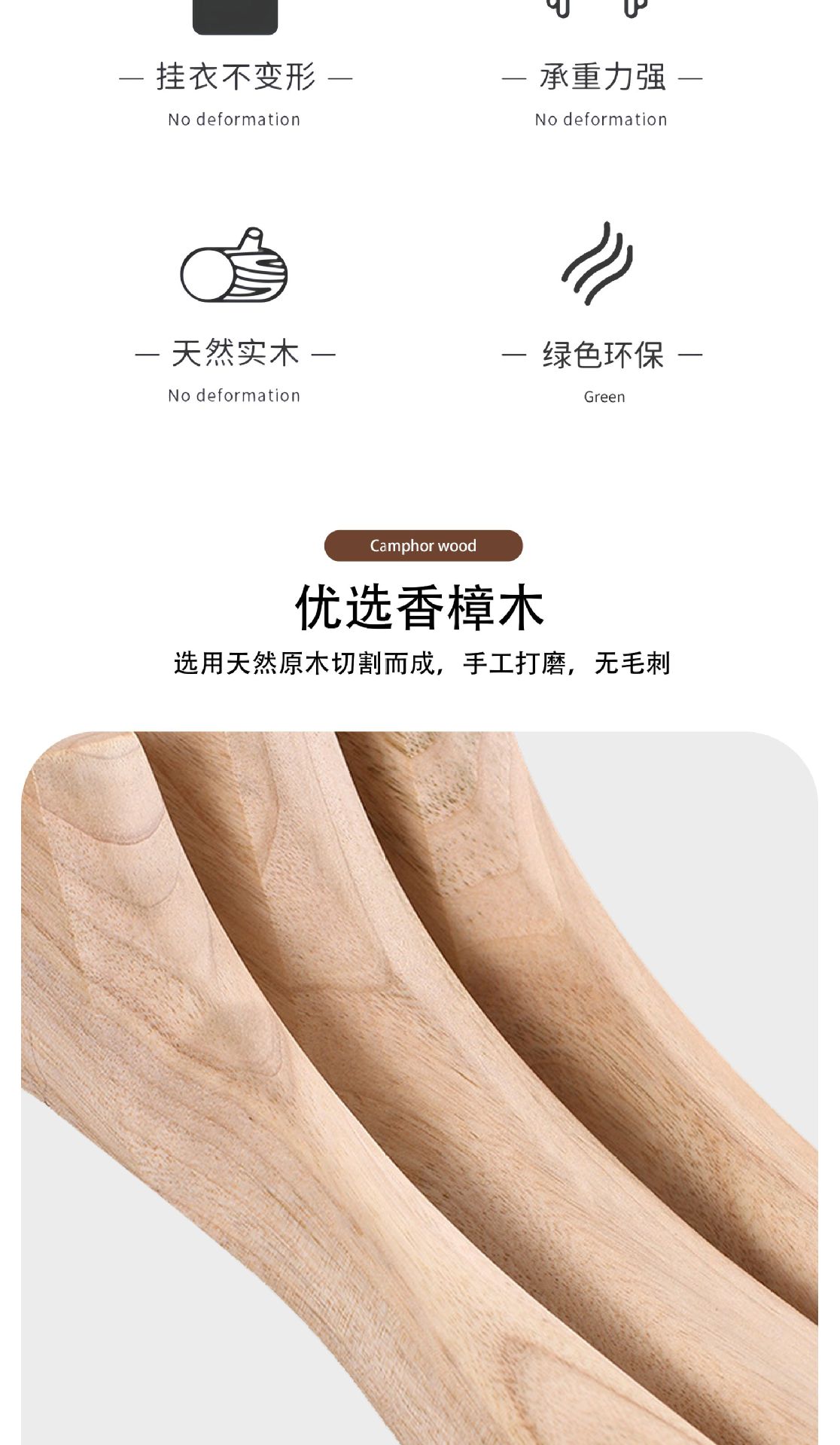 Percha de ropa de madera de campáfora hogar color tronco ancho de hombro sin trajes de ropa de madera colgante de pantalones adultos sin pintura