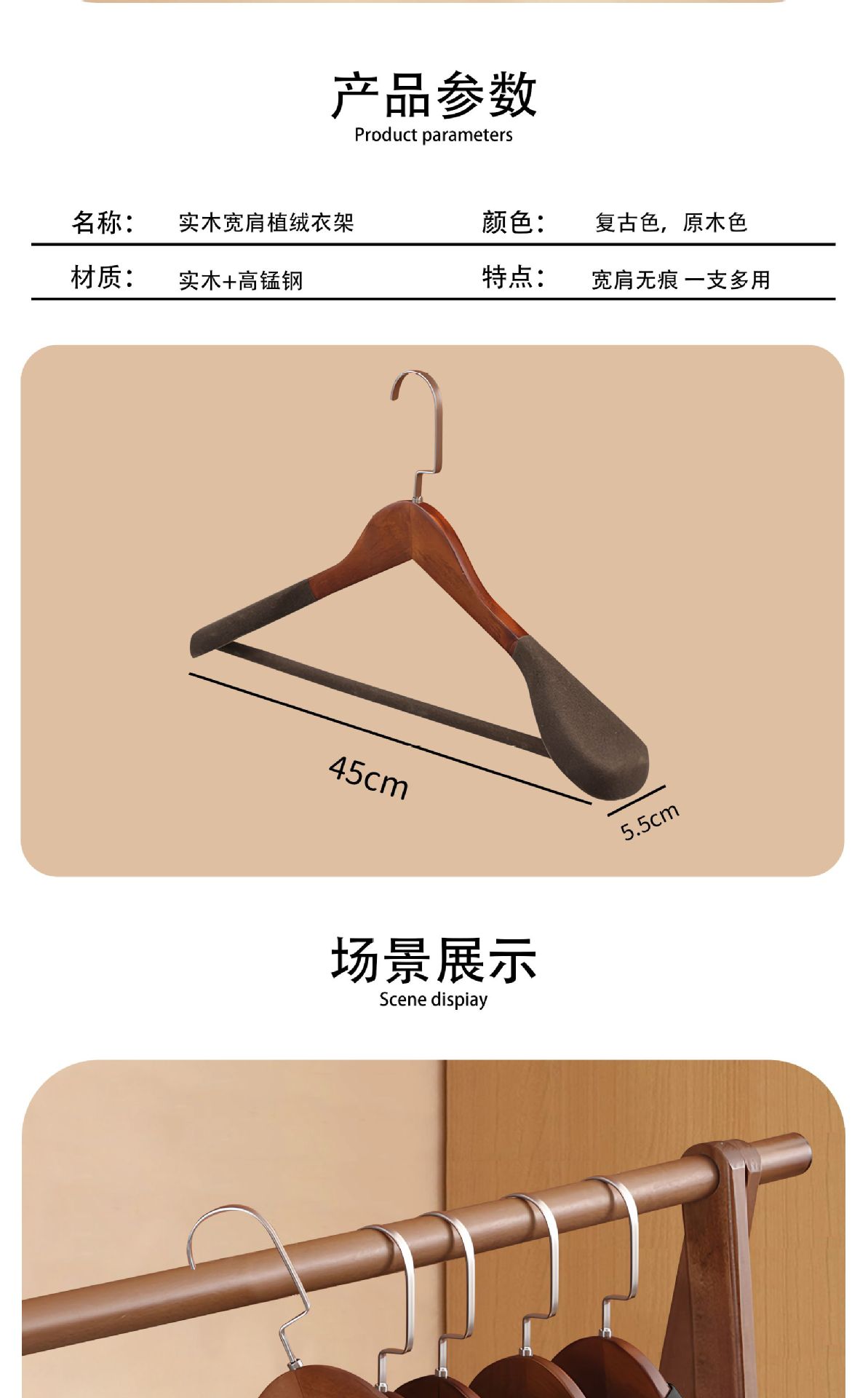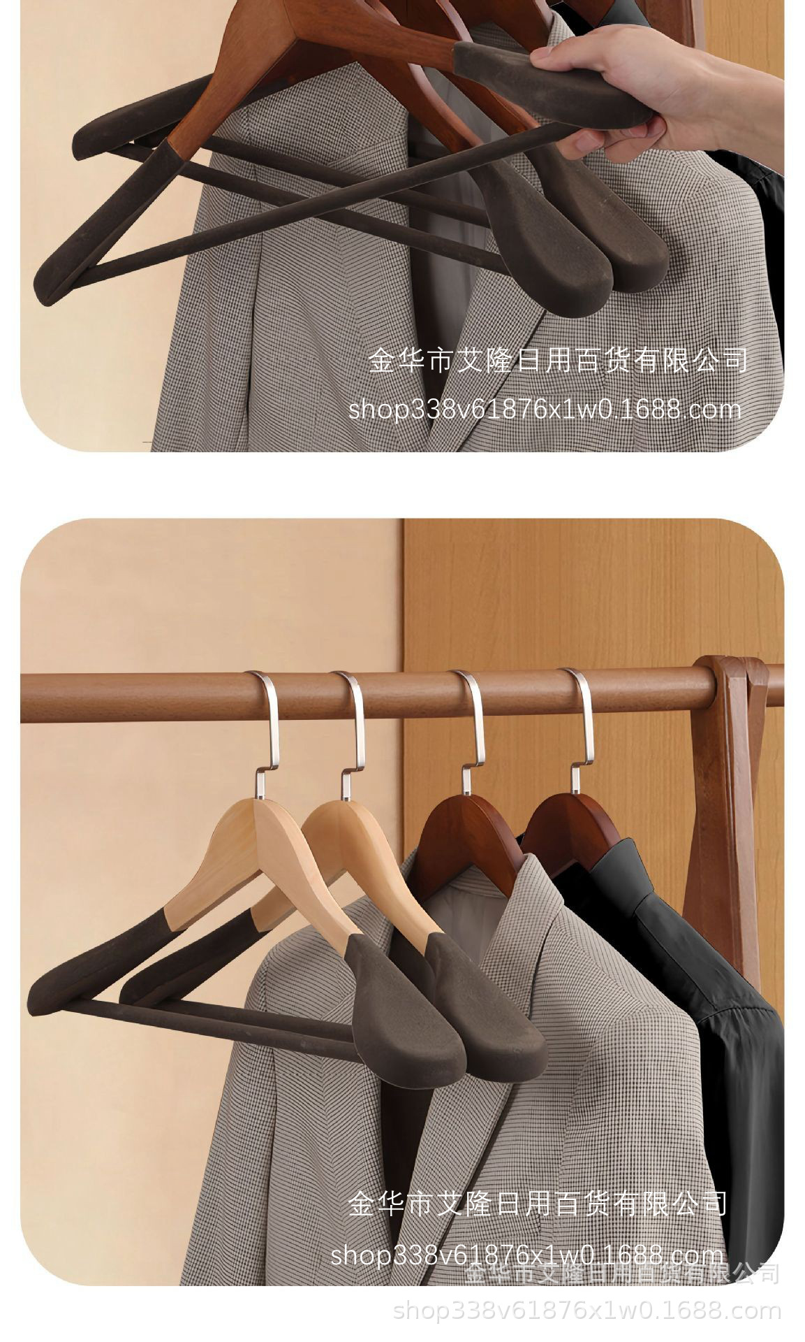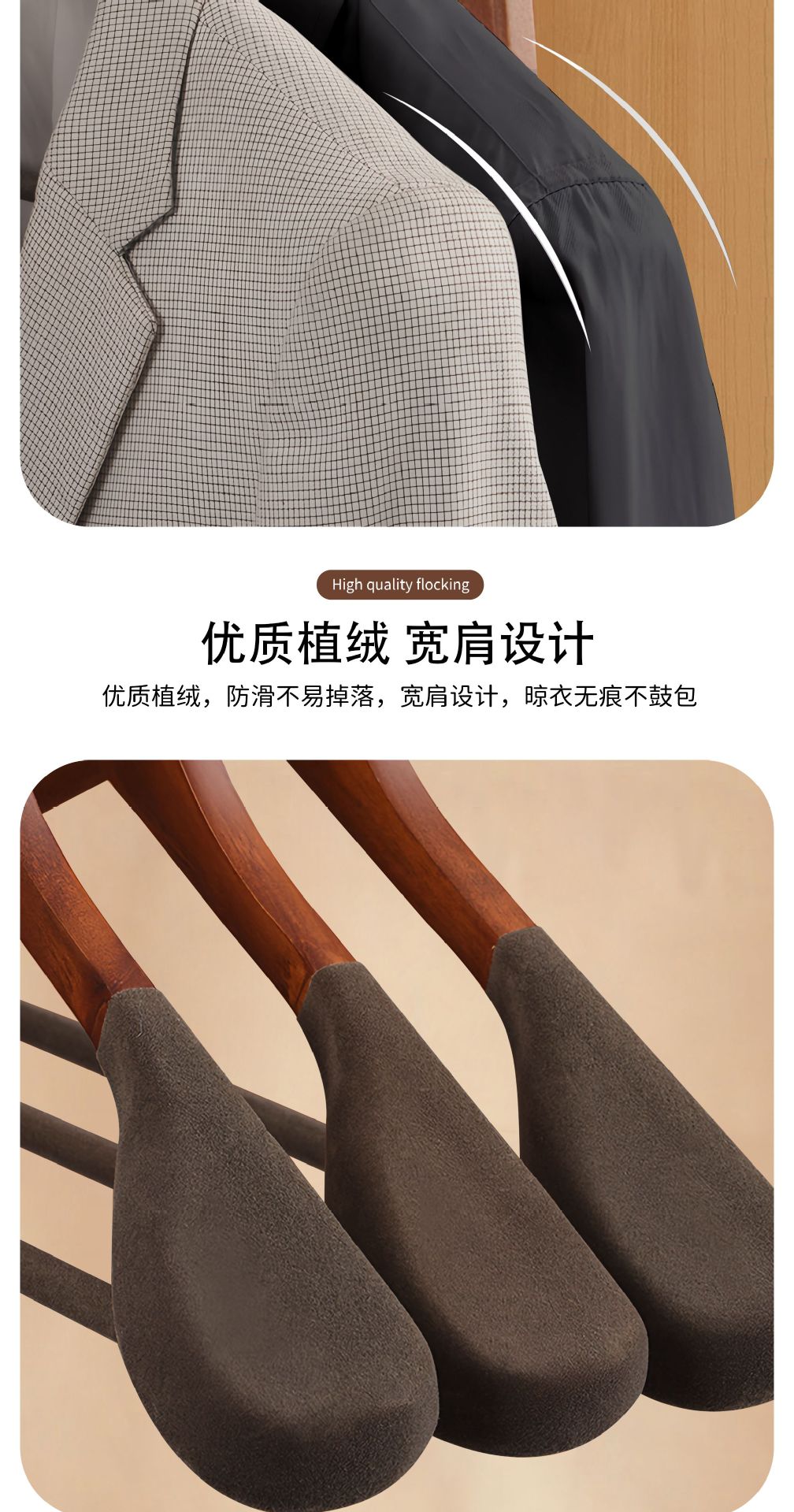 Hombres anchos de alto grado flocado percha de madera sólida abrigo antideslizante hombro sin marcas percha de ropa percha