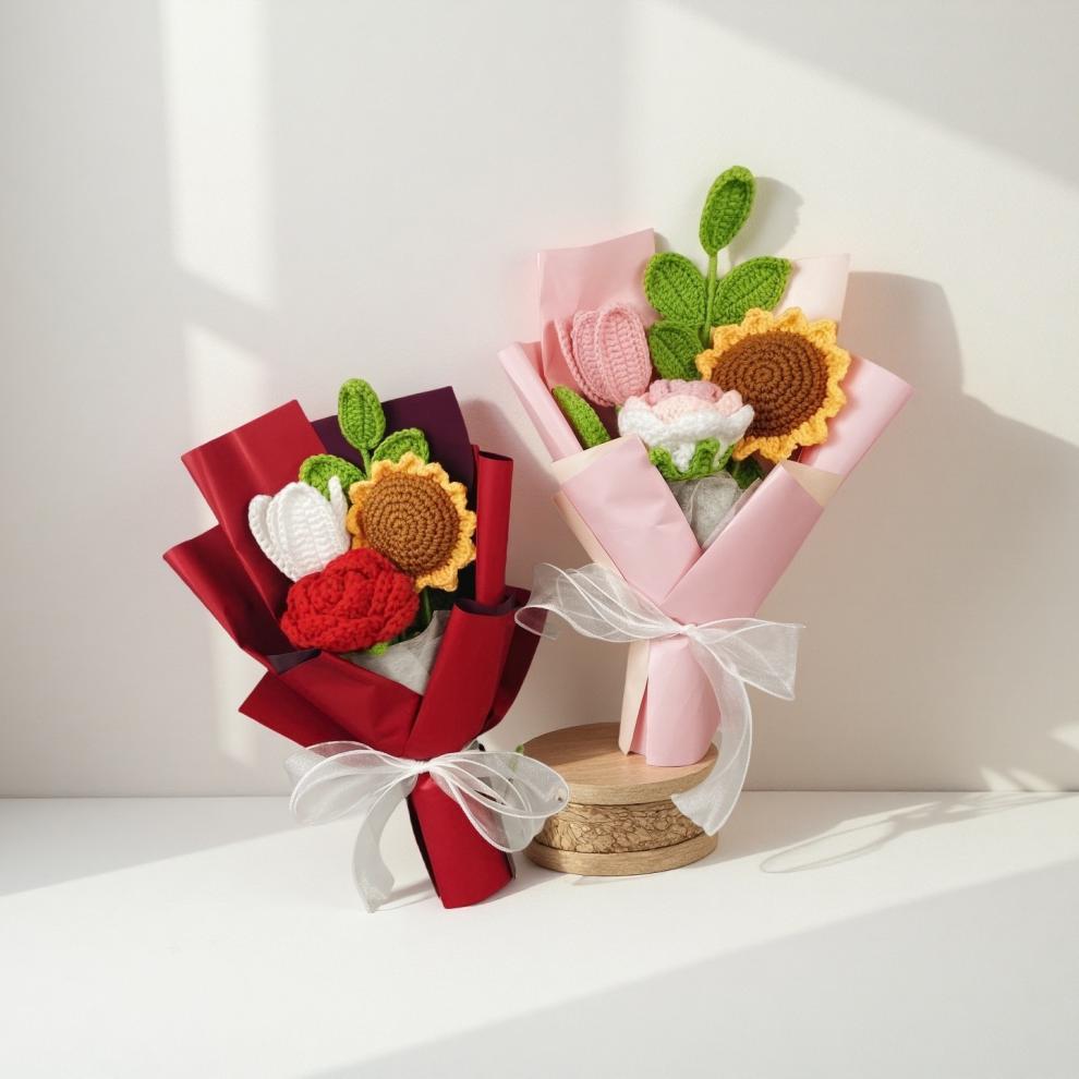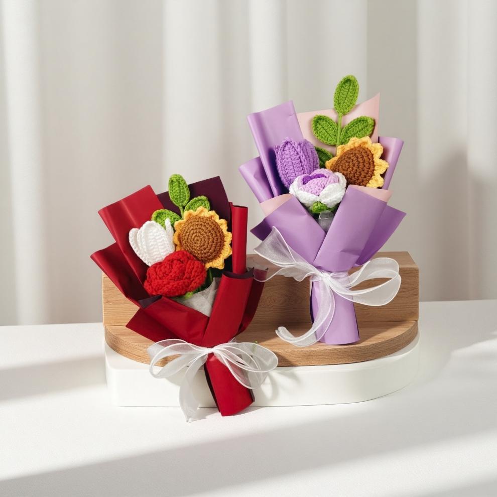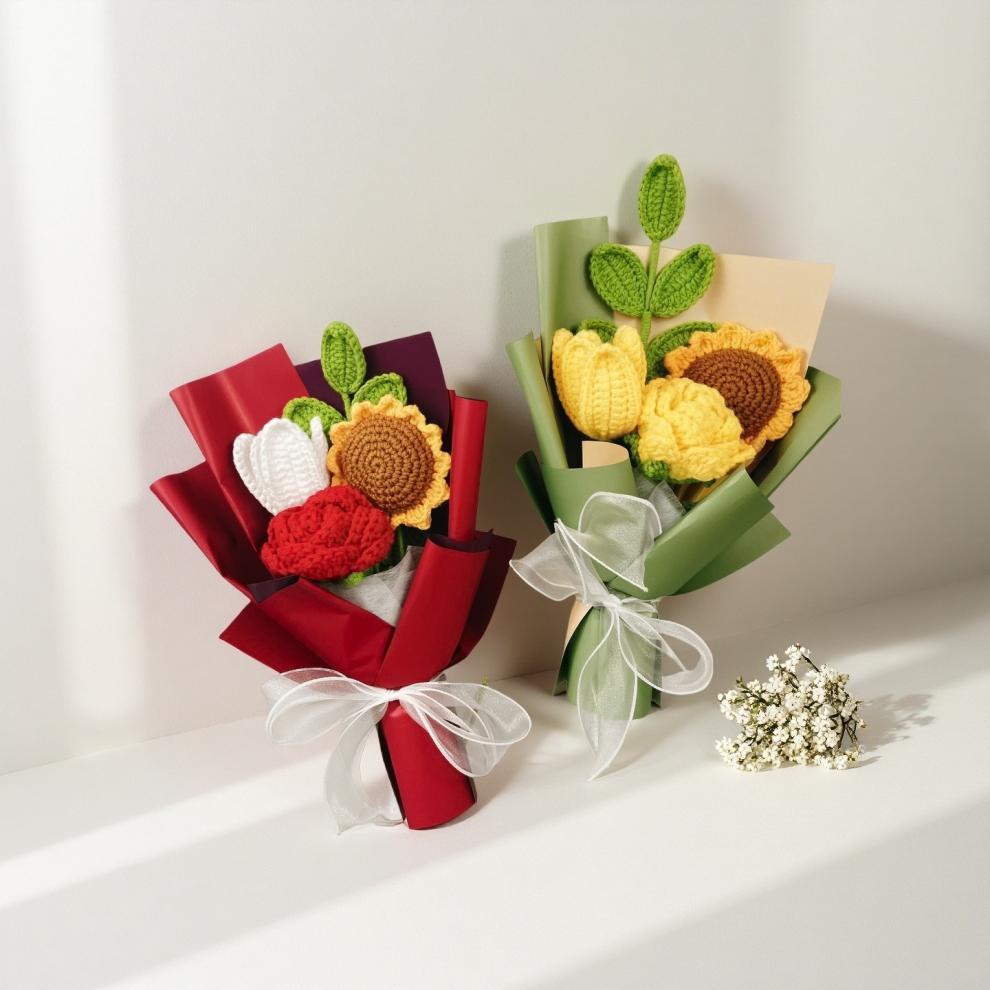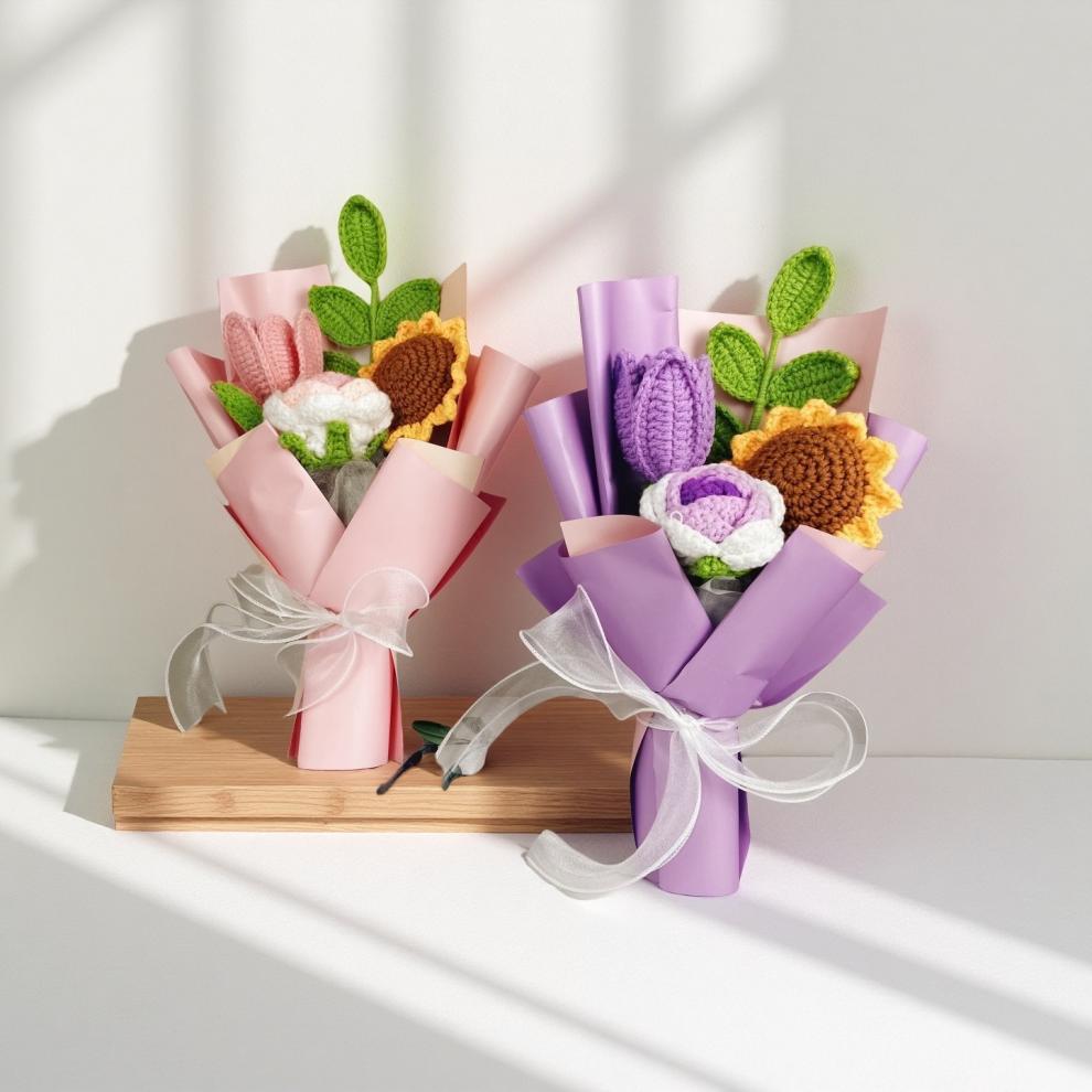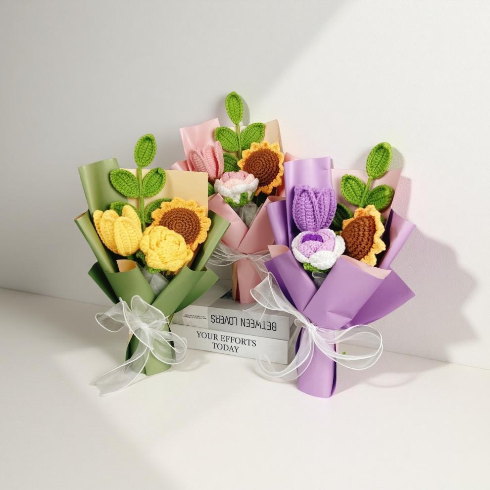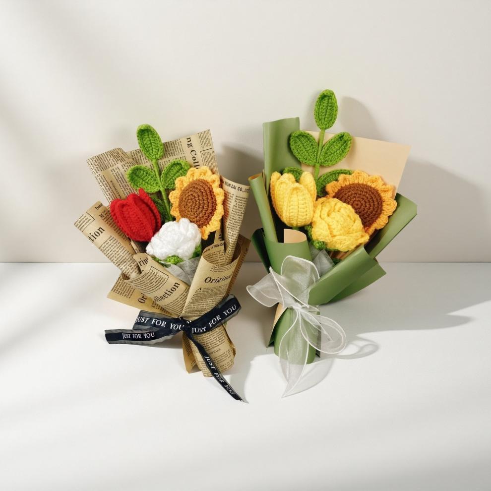 Ramo de Navidad transfronterizo, hilo de lana de crochet a mano, hilo de lana de tulipán, adornos de flores de punto, regalos a mano
