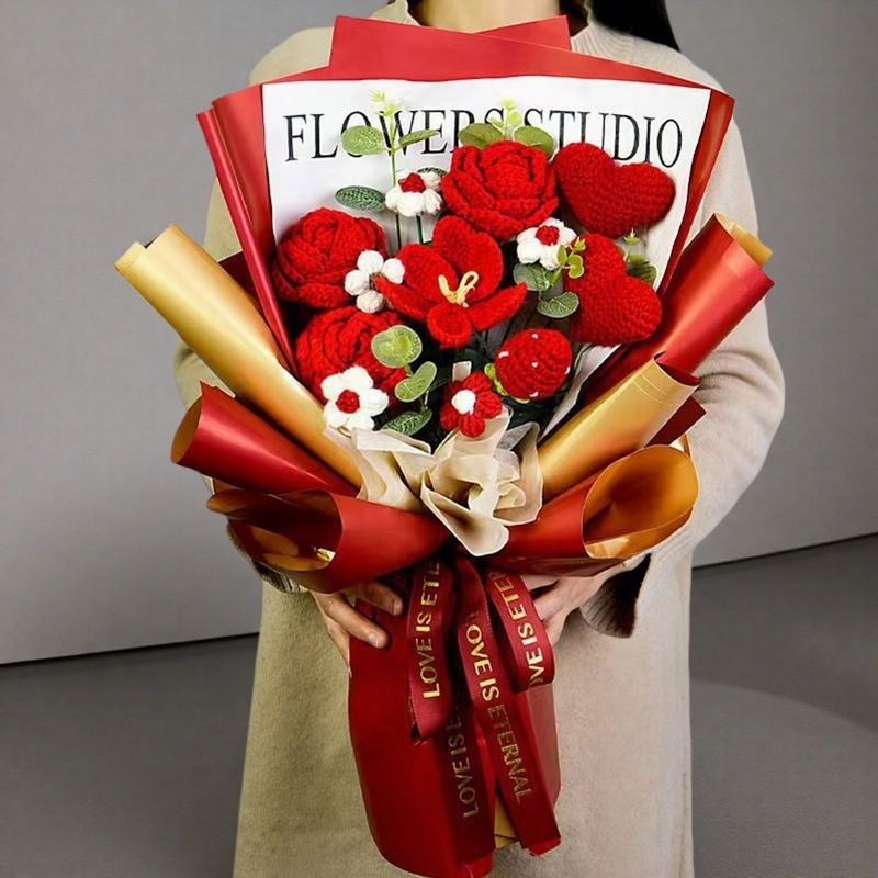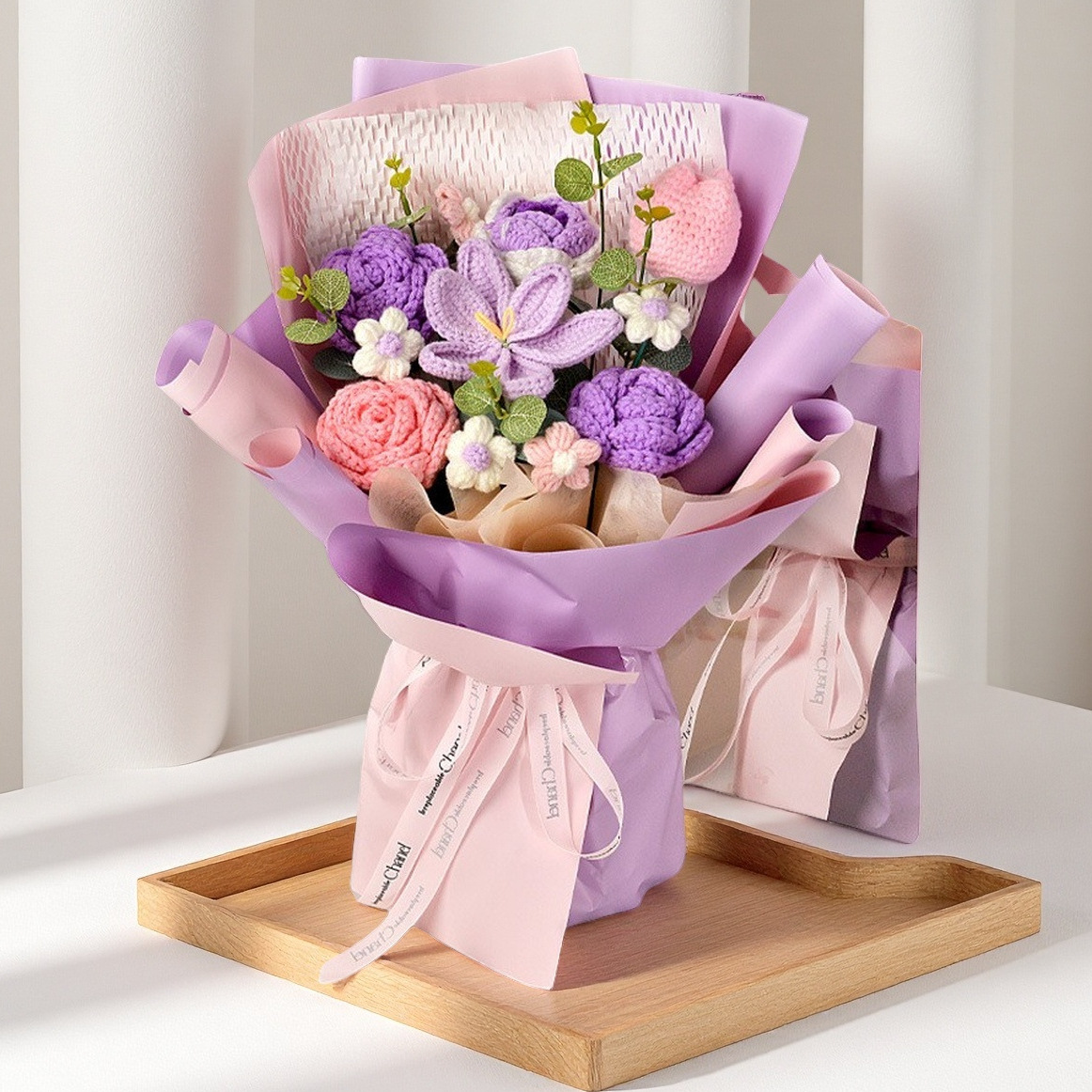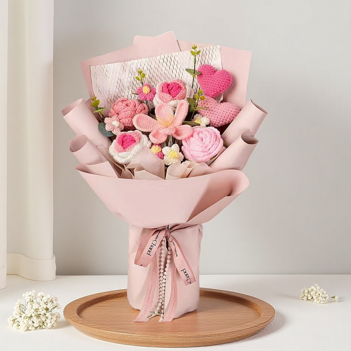 Ramo de lana femenina de cumpleaños, producto práctico terminado, tulipán rosa, ganchillo hecho a mano, paquete de material de bricolaje al por mayor