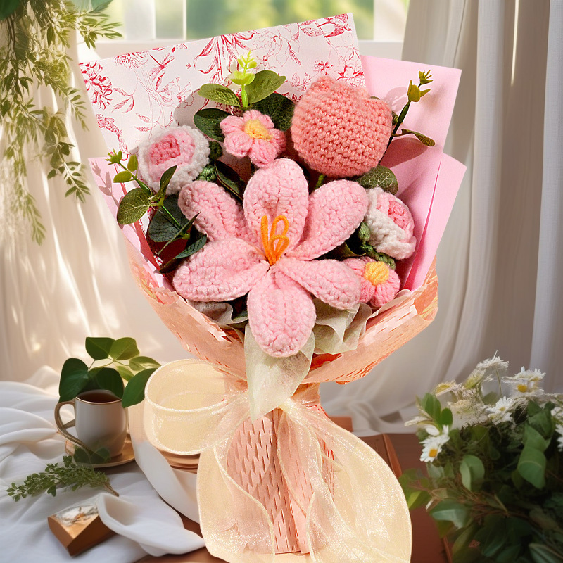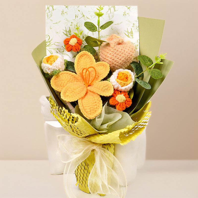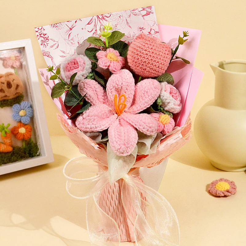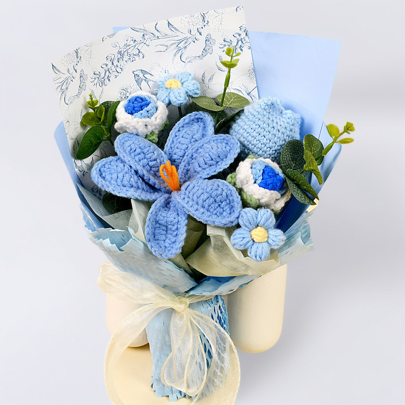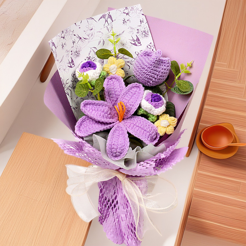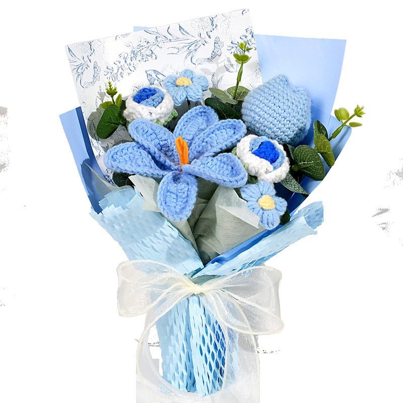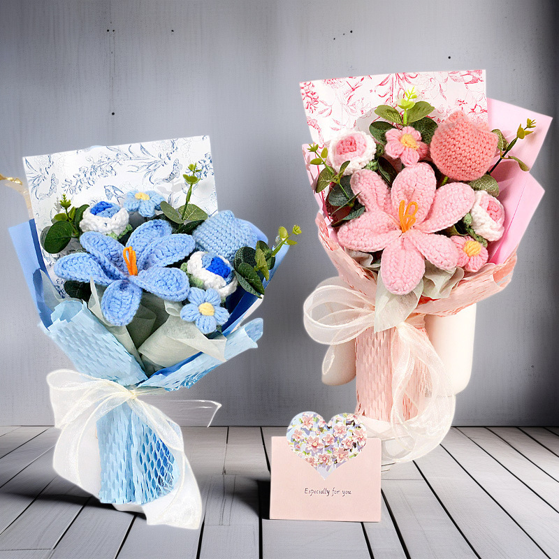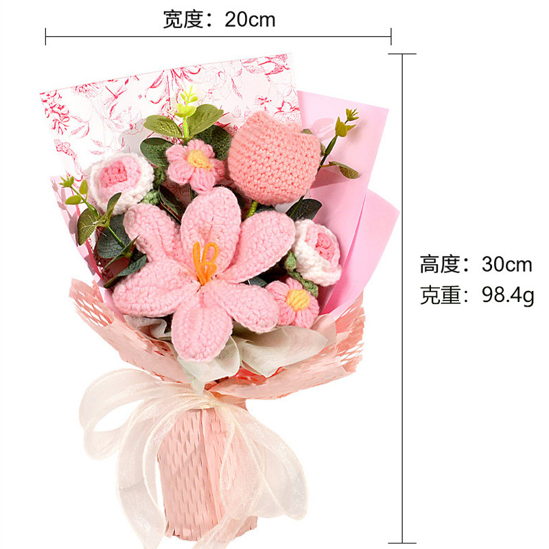 Flores de lana hechas a mano, flores de ganchillo, ramos terminados, tulipanes, rosas, festivales de cumpleaños, novias, ancianos