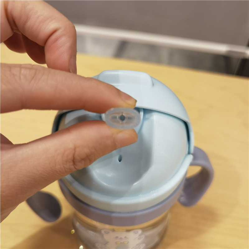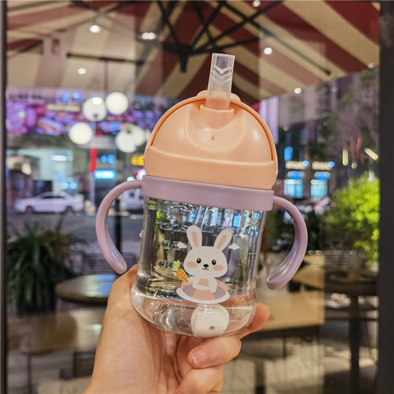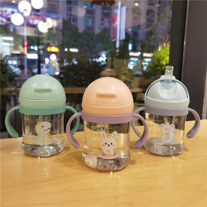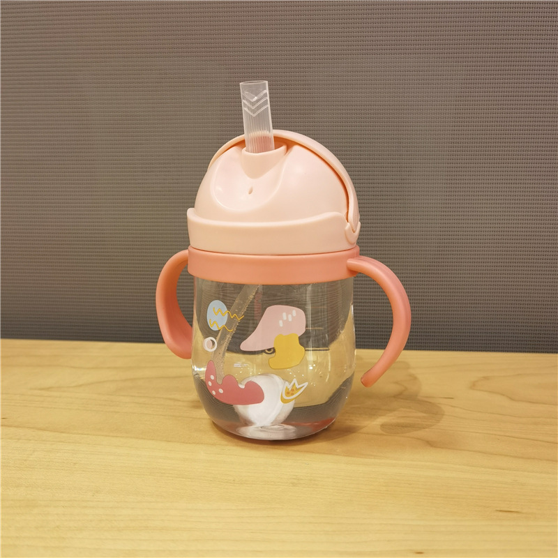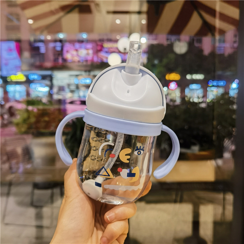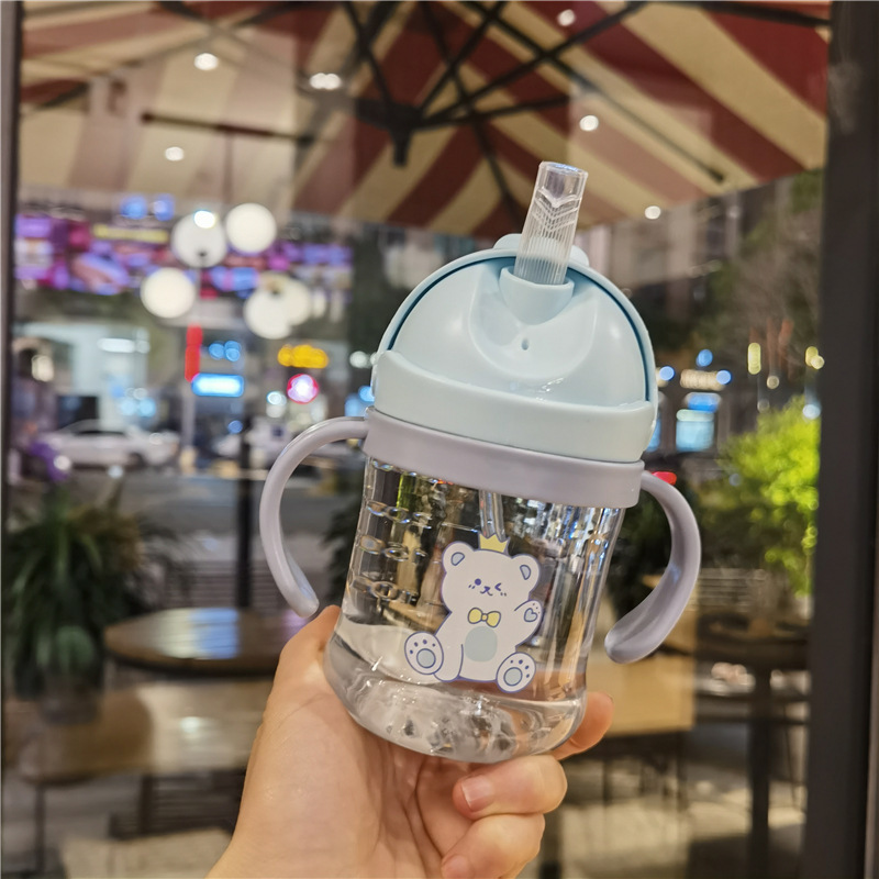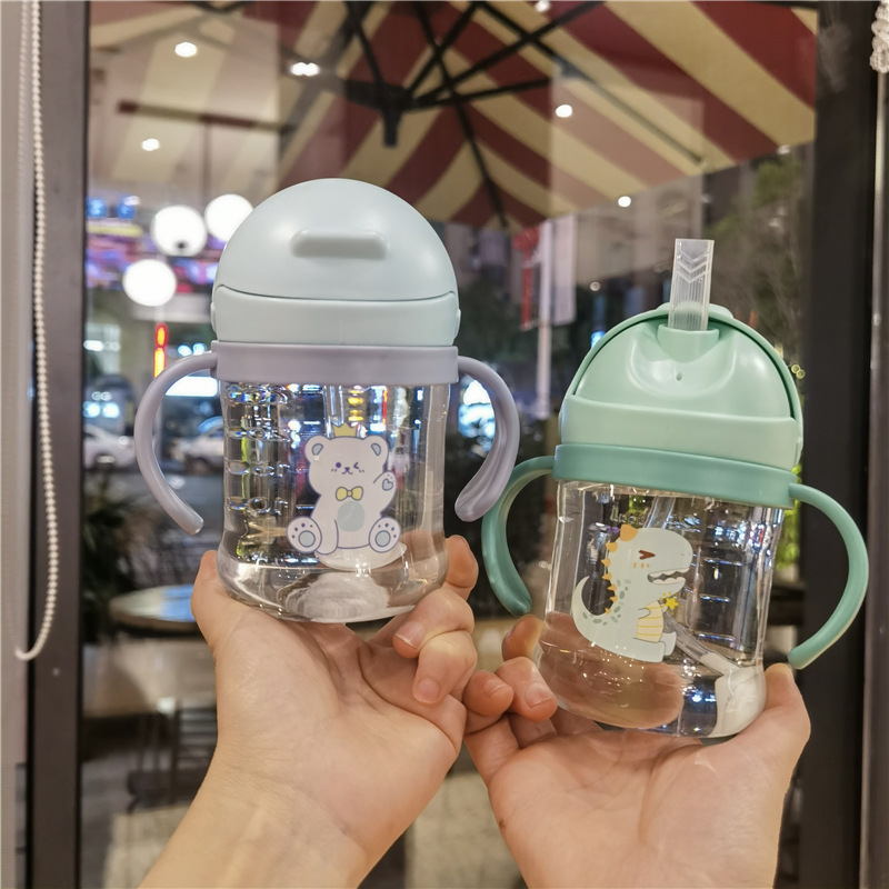 2023 bebé boquilla de succión en forma de V taza de bebida lindo bebé de dibujos animados anti-estrangulamiento Bola de gravedad taza de paja mango